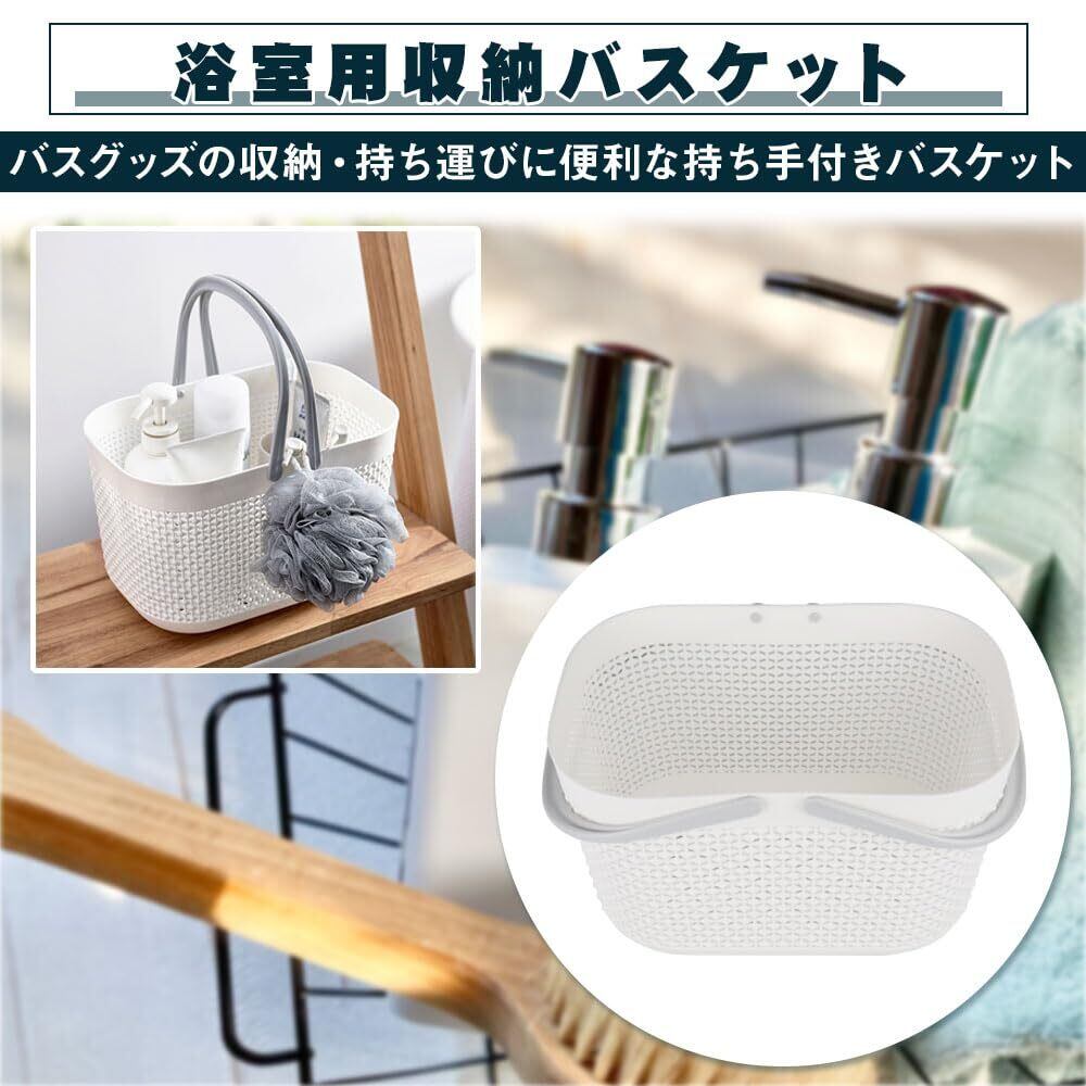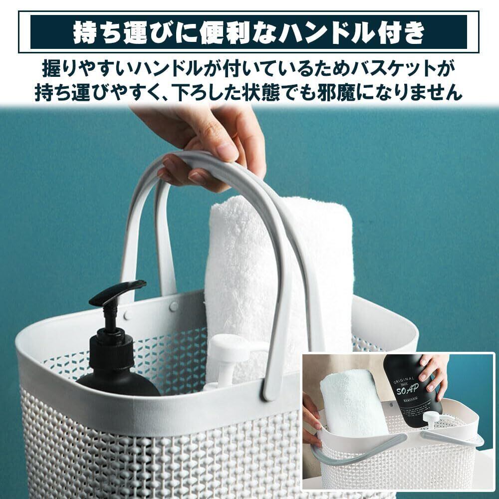 浴室バスケット 持ち手付き 手提げ 水切り 大容量 洗面用具 シャンプーボトル (ホワイト)