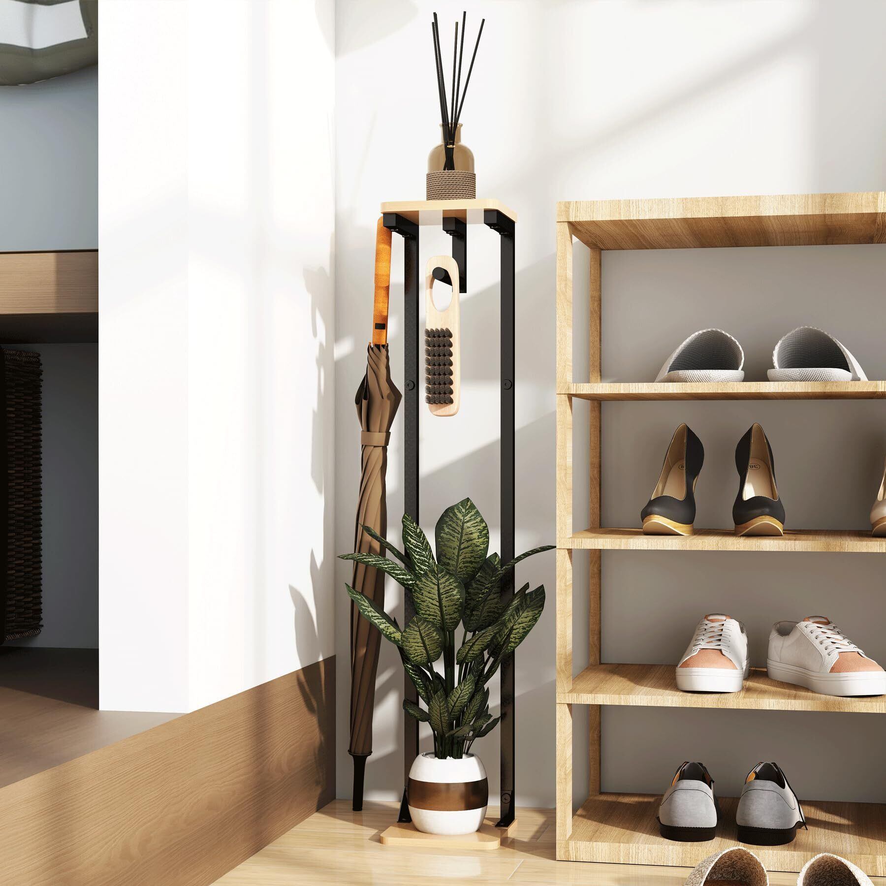 Druviaトイレットペーパーホルダー スタンド型 予備収納付き トイレ収納ラック 防水木製天板 金属フレーム スリムデザイン 幅15cm×高さ80cm ナチュラル 組立式