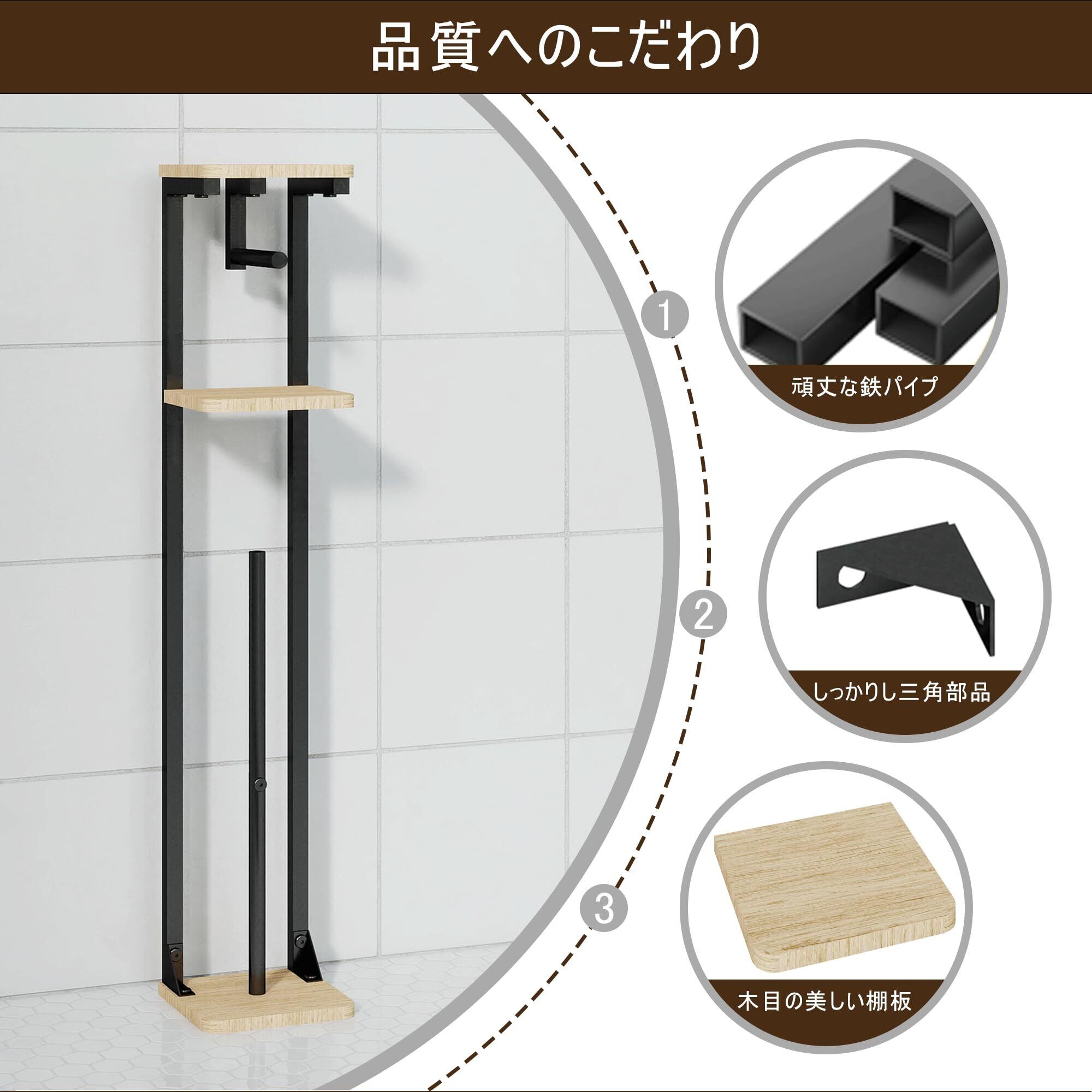 【大容量収納で安心】 一度に3ロール分のトイレットペーパーを収納可能。30cmのホルダーバーはほとんどのロールサイズに対応し、交換の手間を減らします。