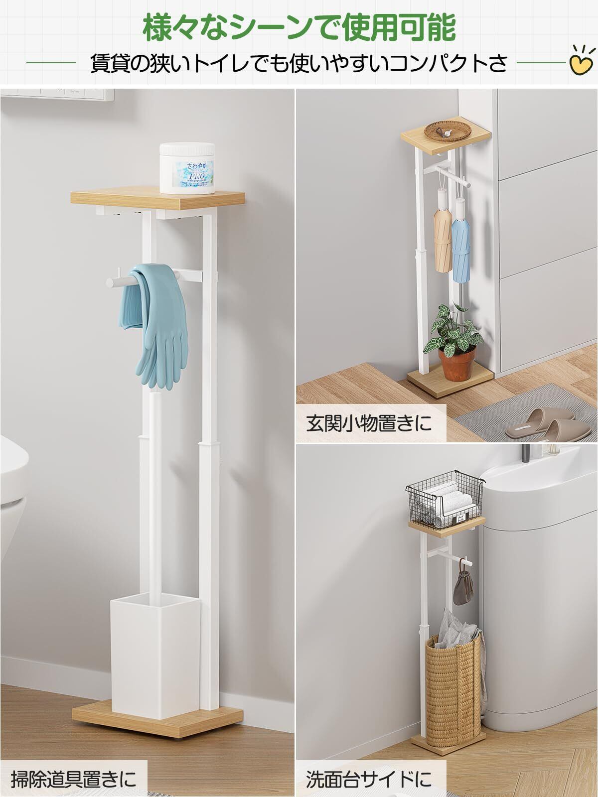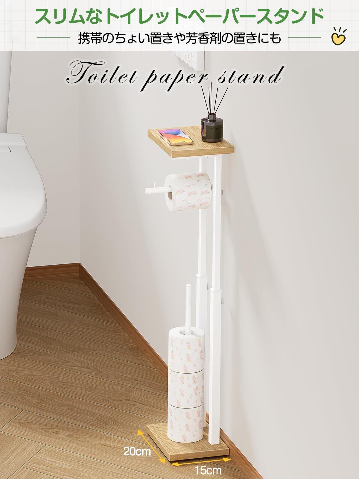 TTWO トイレ収納棚 トイレットペーパーホルダー 幅20×奥行15×高さ60.5-76.5cm 高さ3段階調節 スリム ペーパースタンド スマホ・芳香剤置き トイレラック コーナー 隙間 ストッカー 洗面所 玄関収納 便利 省スペース 薄型 サニタリーラック おしゃれ (ナチュラル)