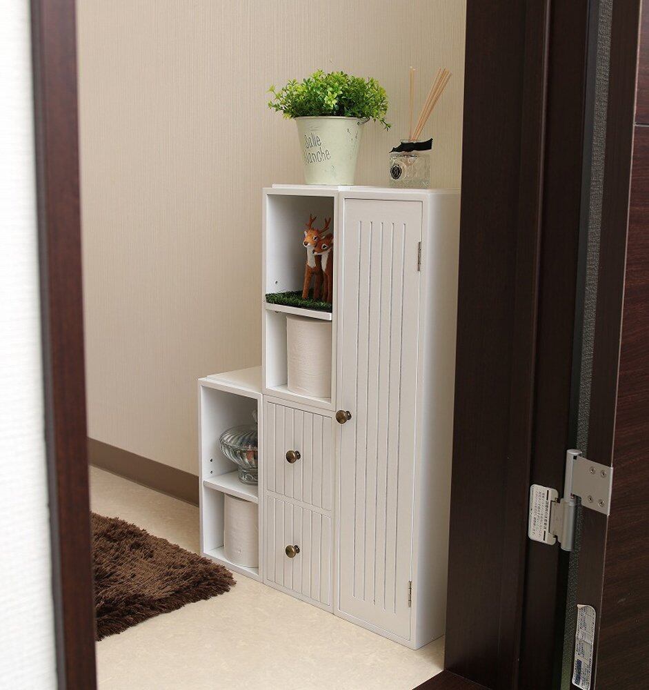オスマック(OSMAC) トイレ収納 スタッキング可能 扉 完成品 ディフューザー 観葉植物 幅15×奥行17×高さ60.5cm ホワイト KDM-3