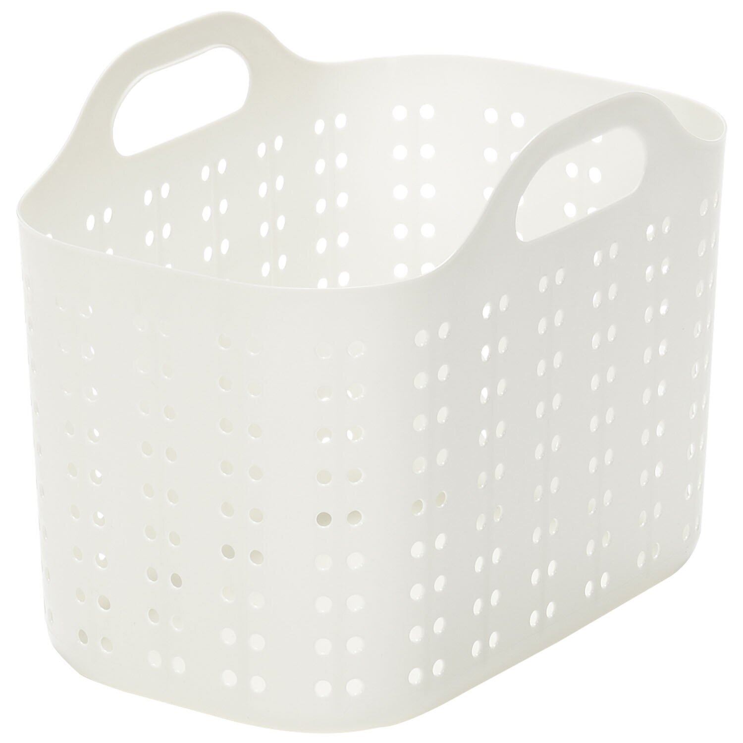 【新着商品】サンカ サンバッサ やわらか素材のソフトバスケット スリムなかたちですっきり収納 M ホワイト ドット穴が小さく衣類が傷つきにくい 軽量 大型 大容量 通気性 片手で持ち運び プラスチック (幅42×奥行28×高さ30.5cm) 簡単お手入れ 清潔 ランドリー 洗濯かご 銭湯 サウナ おしゃれ 日本製 SANKA VOB-MWH