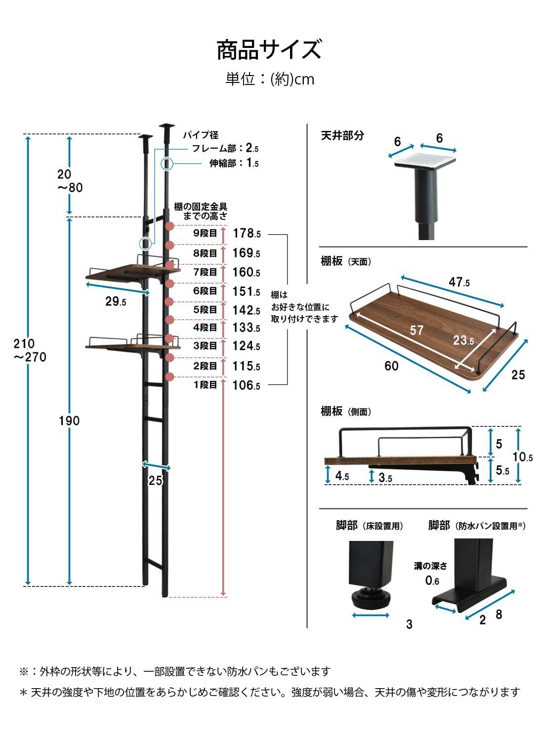 サイズ:(約)幅60x奥行29.5x高さ210-270cm