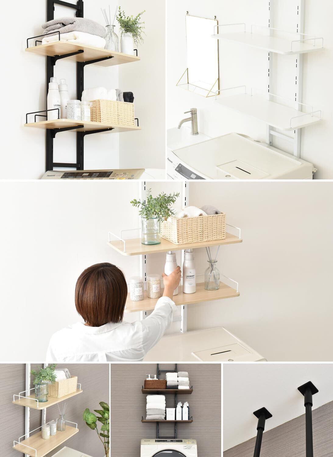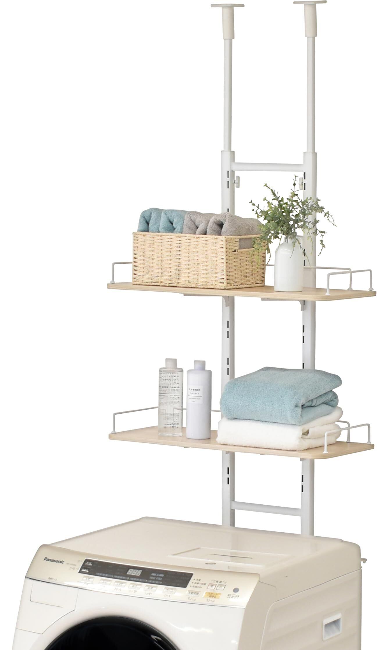 ekans(エカンズ) 棚付きランドリーラック 棚2段 突っ張りタイプ LSH-T200WN (ホワイト×オーク)