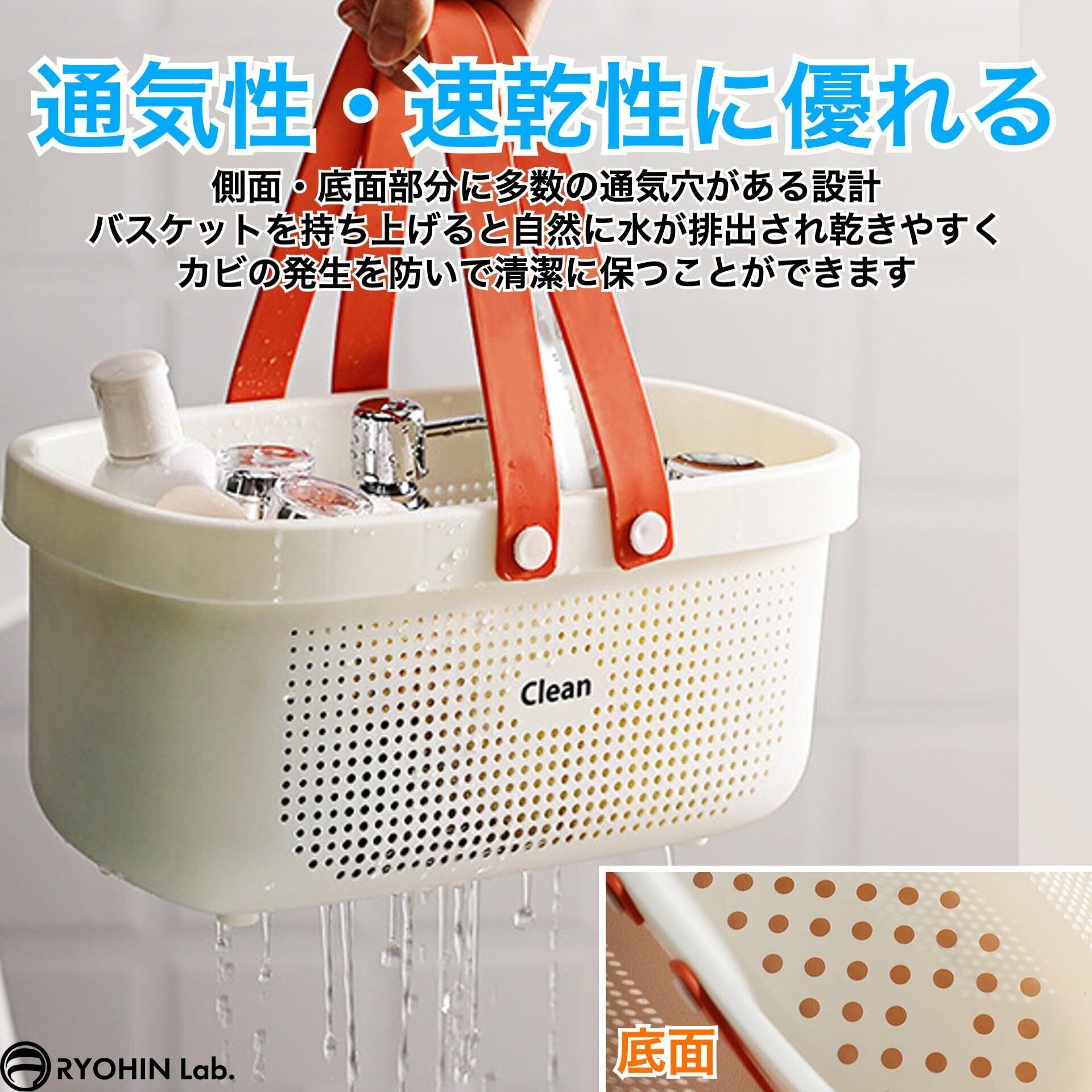 【通気性・速乾性に優れる】側面・底面部分に多数の通気穴がある設計で、通気性・速乾性に優れています。バスケットを持ち上げると自然に水が排出され乾きやすく、カビの発生も防いで清潔に保つことができます。