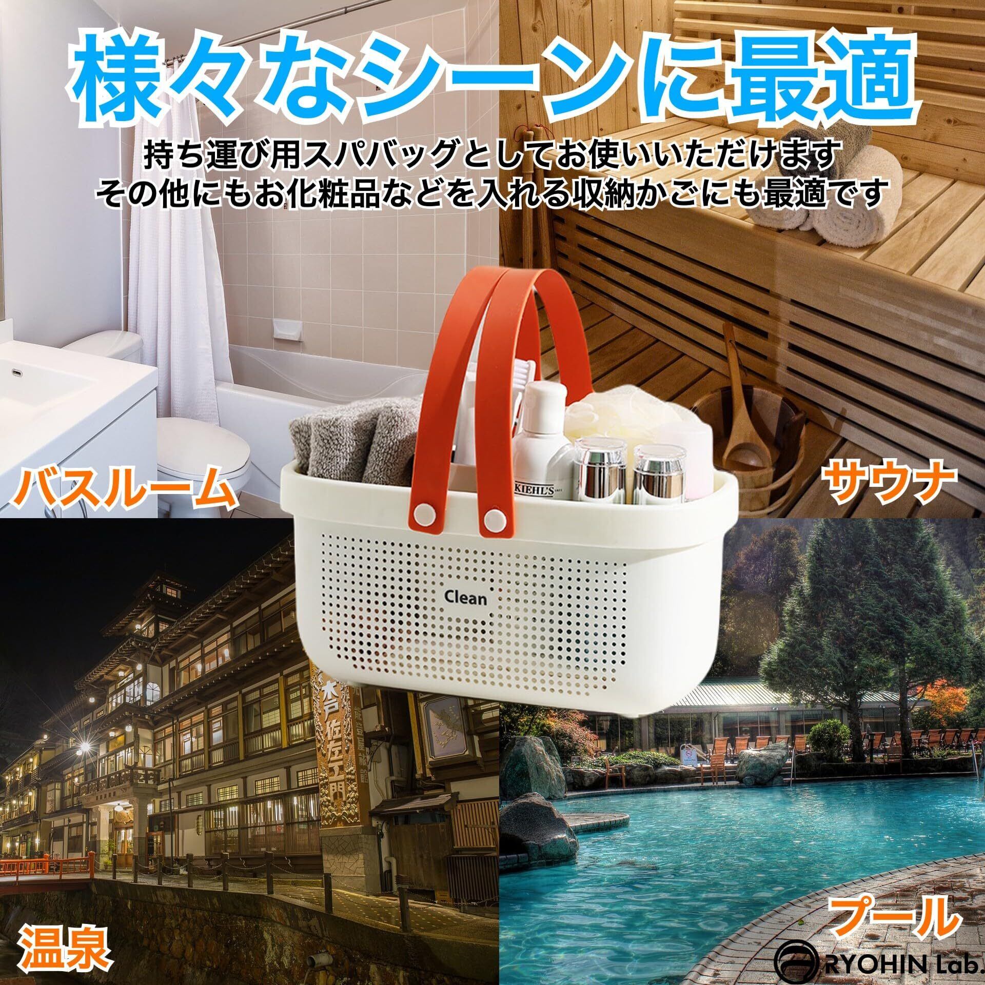 【様々なシーンに最適】バスルーム・サウナ・温泉・銭湯・プールなど持ち運び用スパバッグとしてお使いいただけます。その他にも、お化粧品などを入れる収納かごにも便利です。