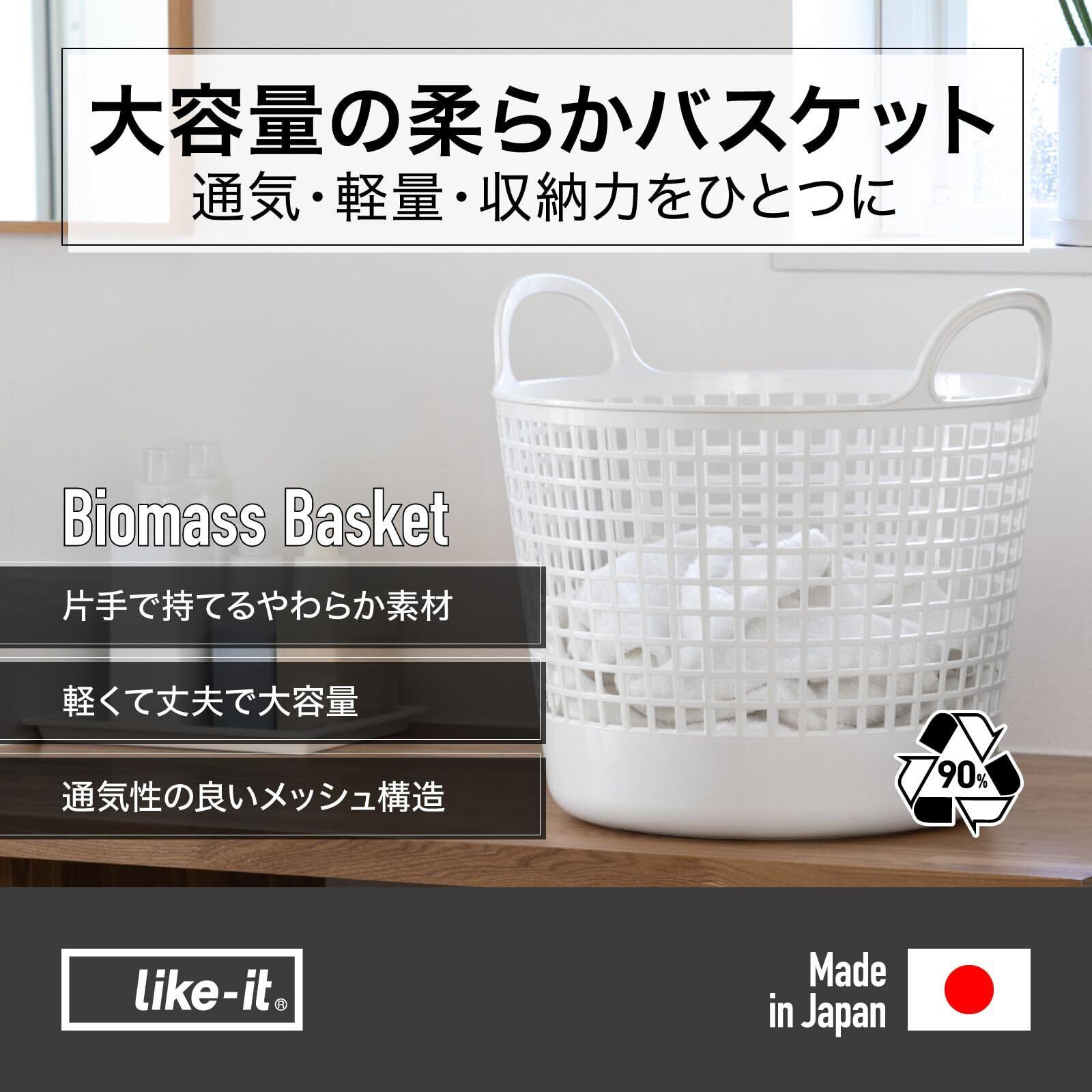【2022最新】ライクイット (like-it) ランドリー 洗濯 収納 ラウンドタイプ バスケット 約幅41x奥37x高37.5cm ホワイト 日本製 LBB-01C バイオマスプラスチック約90%使用