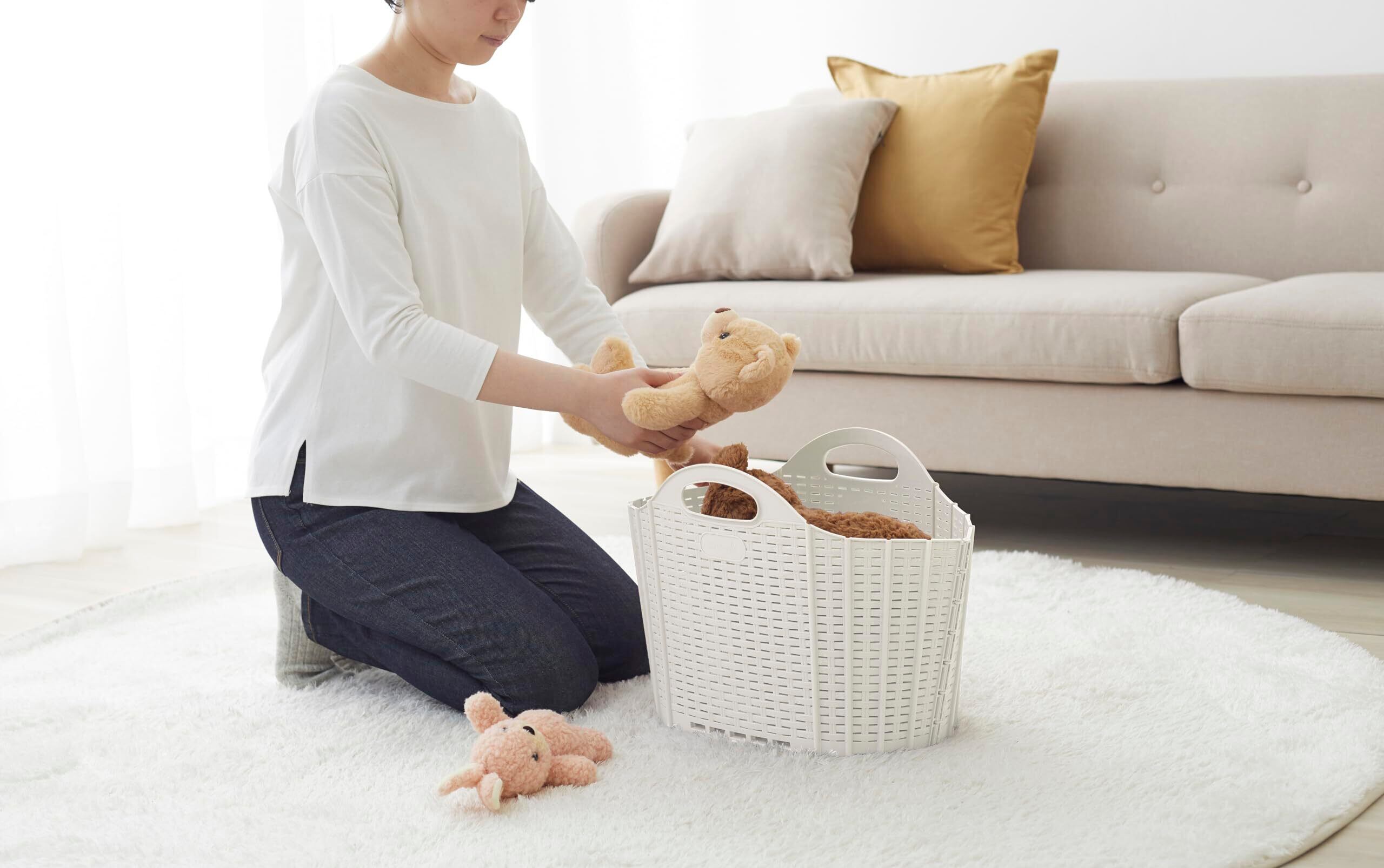 折りたためるバスケット。スリムに収納できるから邪魔になりません!持ち運びも便利。