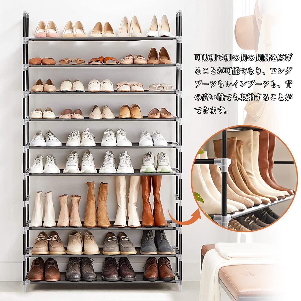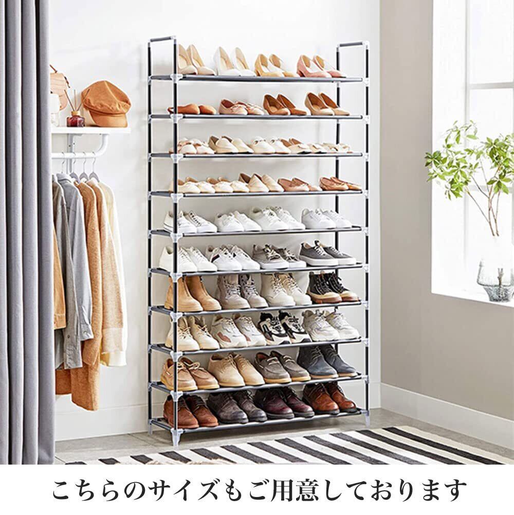 【棚数を自由に調節可能です】Diy自由自在に組み立て、棚板を1枚取り付けなければ、靴を入れることができます。シューズラックの高さを自由に調整できるので、靴の数によって5層、6層、8層、9層、10層までお好みによって自由に組み合わせることができます。お好みに応じて自由に組み立てられます