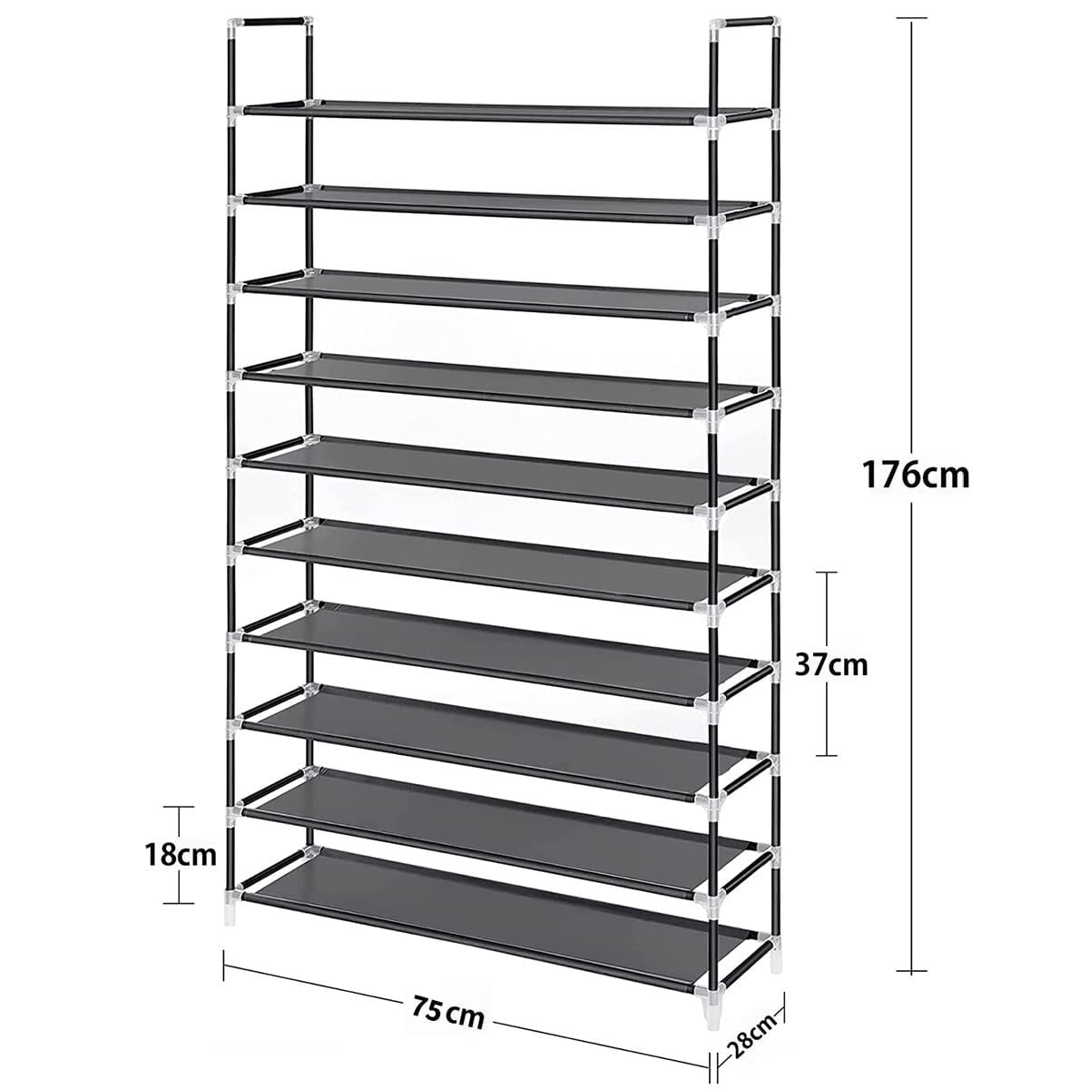 シューズラック 組み立て式 大容量 10段 靴収納 下駄箱 スリムシューズラッ 玄関収納 おしゃれ 靴入れ 靴棚 幅約75×奥行28×高さ176cm (ブラック)