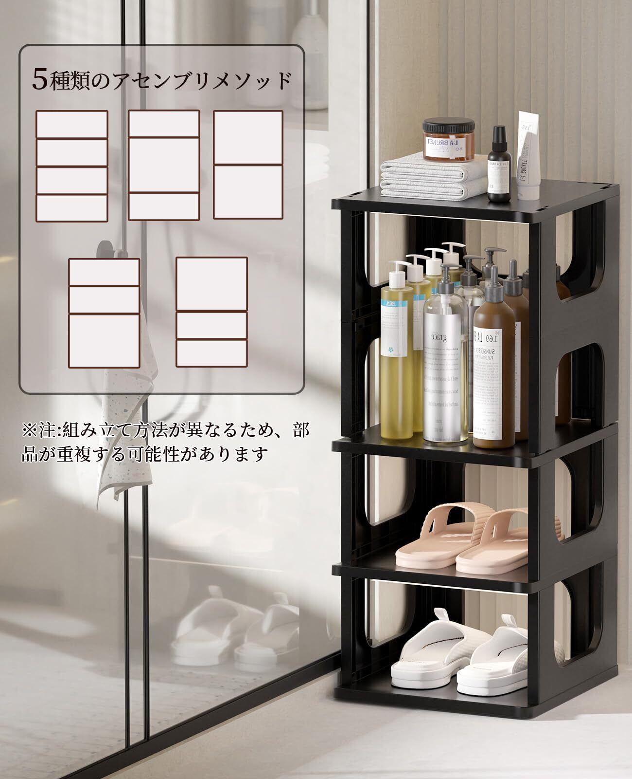 【自由に組み合わせ】スタンドシューズフレームのサイズ: 幅24.3 奥行26 高さ58.3cm、3-5足入る。 コンビタイプのシューズラックに4種類異なる組み立て方法があります。 2セットまたは2セットのキューブシューズラックをご注文ください。 シューズボックスはコンパクトなフォルムで、シューズを整理しながら、スペースを節約できます。 シューズボックスは、忙しい入口や保管エリアを乱雑に遠ざけます。