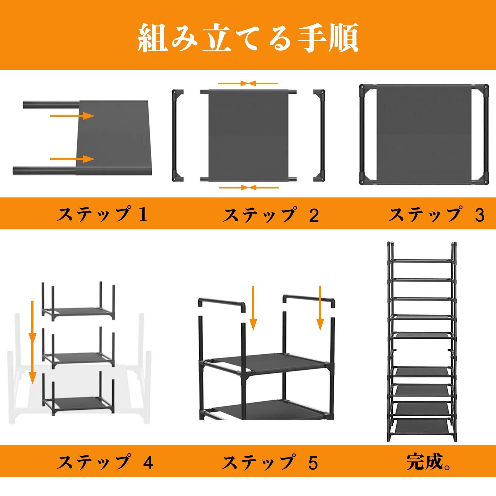 シューズラック 10段 靴収納 2025最新強化版 シューズラックスリム 省スペース 進化した不織布 靴棚 寝室/玄関に靴を効率収納 靴入れ 組み立て式 幅約45×奥行28×高さ175cm(10段−45cm幅、ブラック)