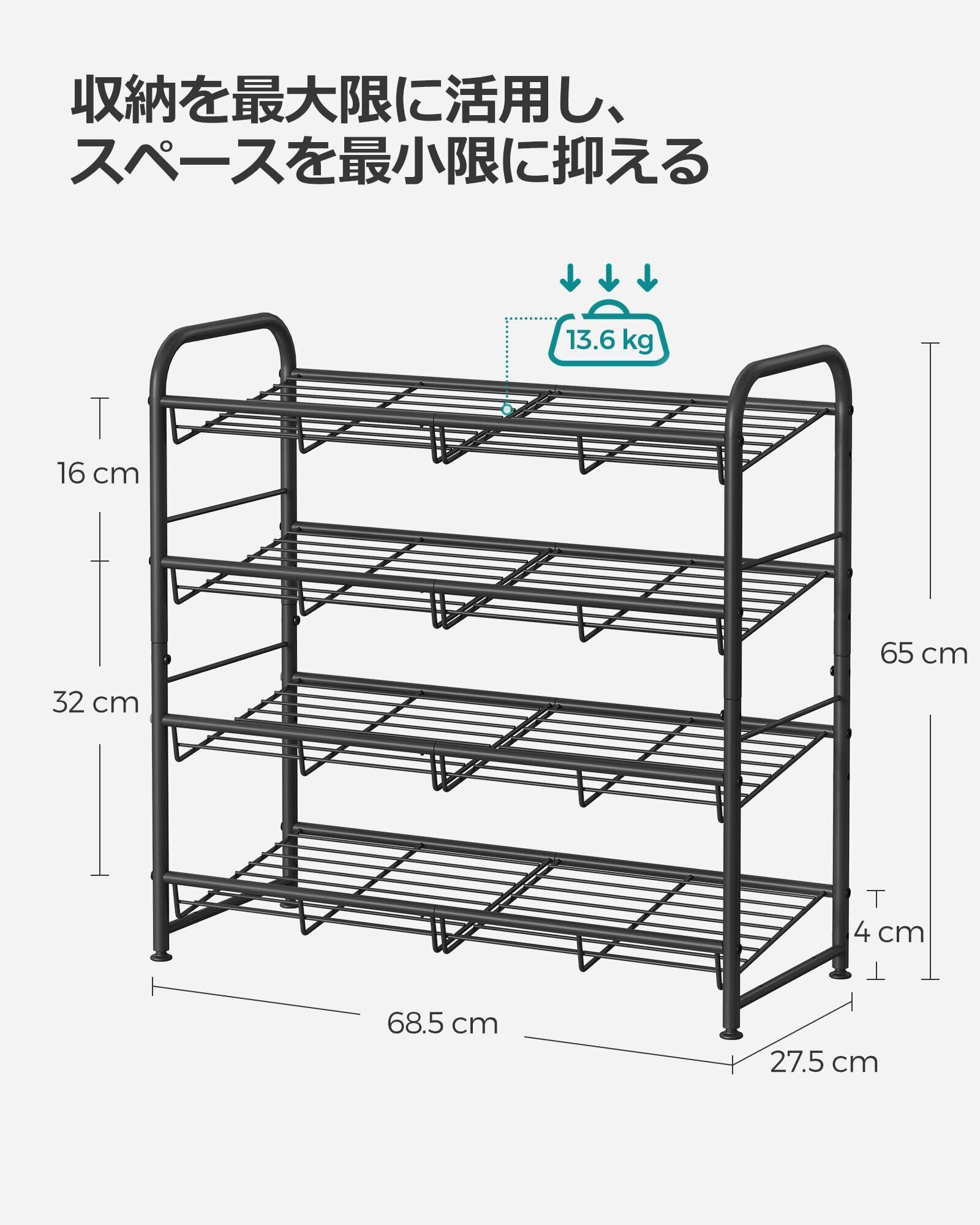 【特価セール】SONGMICS シューズラック スリム 省スペース 玄関 おしゃれ 大容量 4段 下駄箱 靴箱 整理 組立簡単 68.5x27.5x65cm LMR067B01