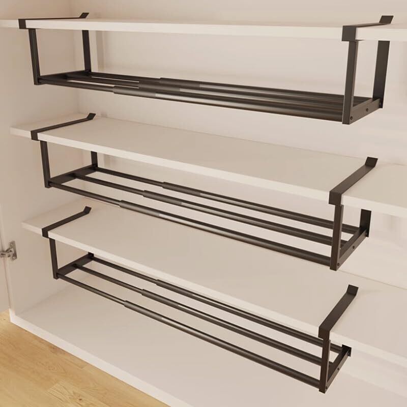 浮かせる 伸縮 シューズラック フレーム 靴収納 伸縮式 スリム 収 1段 靴 靴箱 下駄箱 靴棚 靴置き 玄関 スペース 省スペース (黒の)