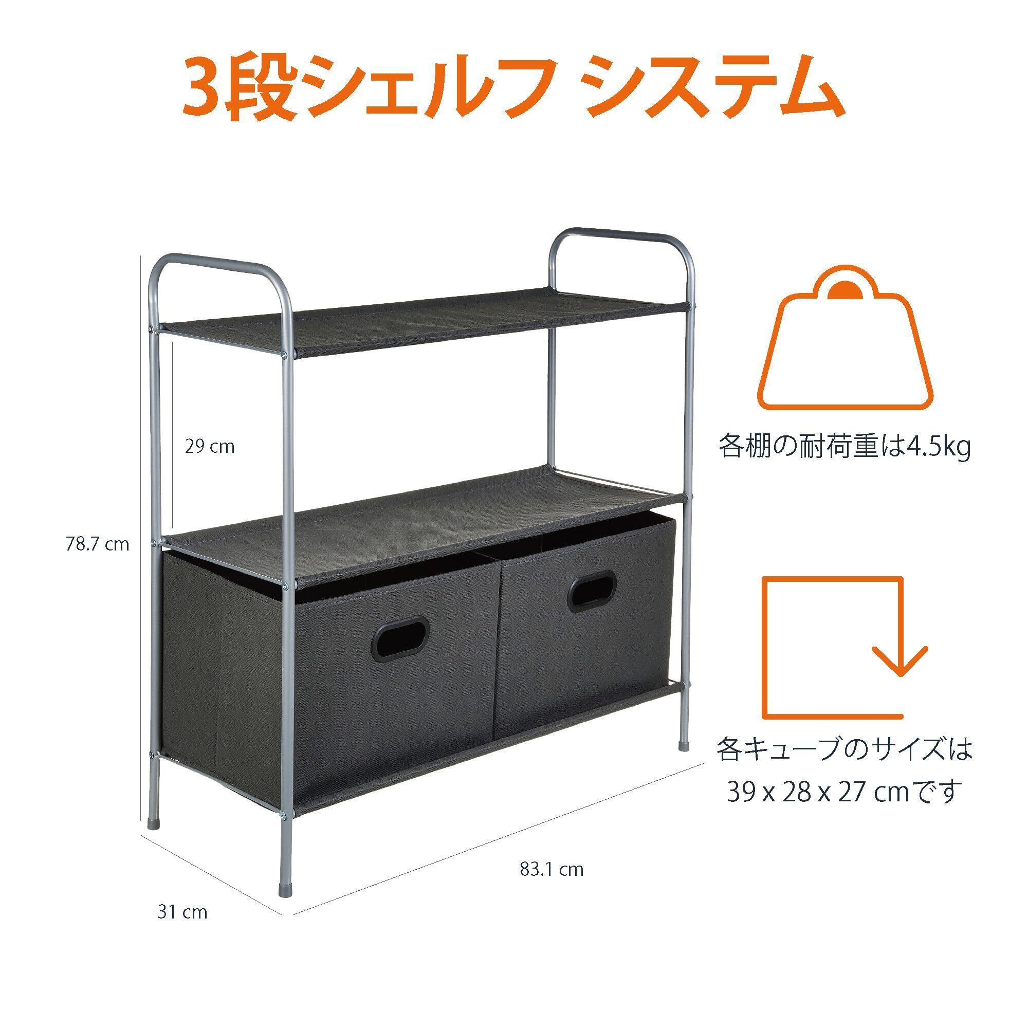 ベーシック ラック クローゼット収納 収納ボックス付き 83.1 × 31.0 × 78.7 cm グレー 3棚