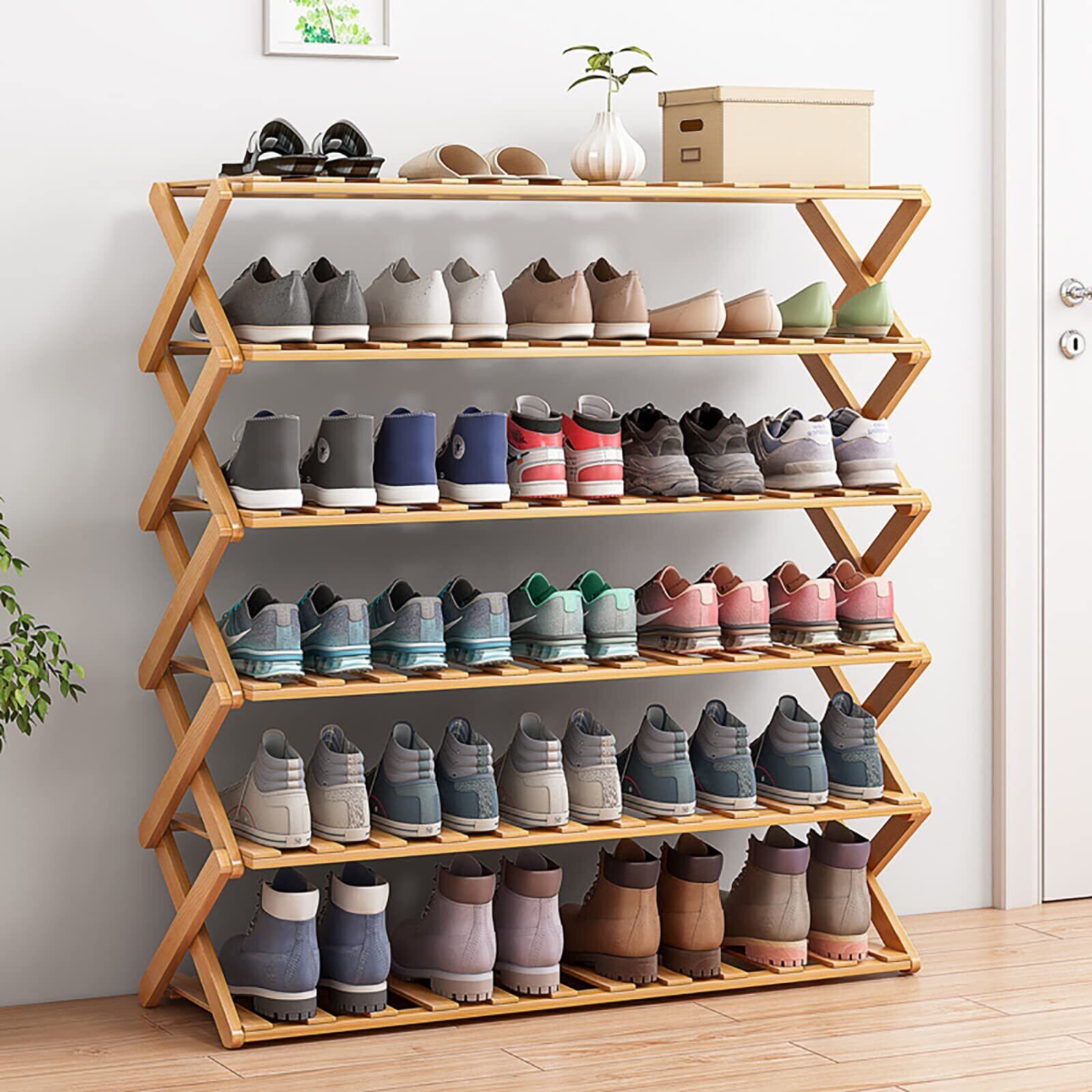 【新着商品】シューズラック 折りたたみ スリム 省スペース 4段/5段/6段 天然竹製 完成品 幅50/70/100cm 組立不要 靴棚 靴収納 玄関 室内 廊下 部屋 (ナチュラル, 6段-幅100cm)
