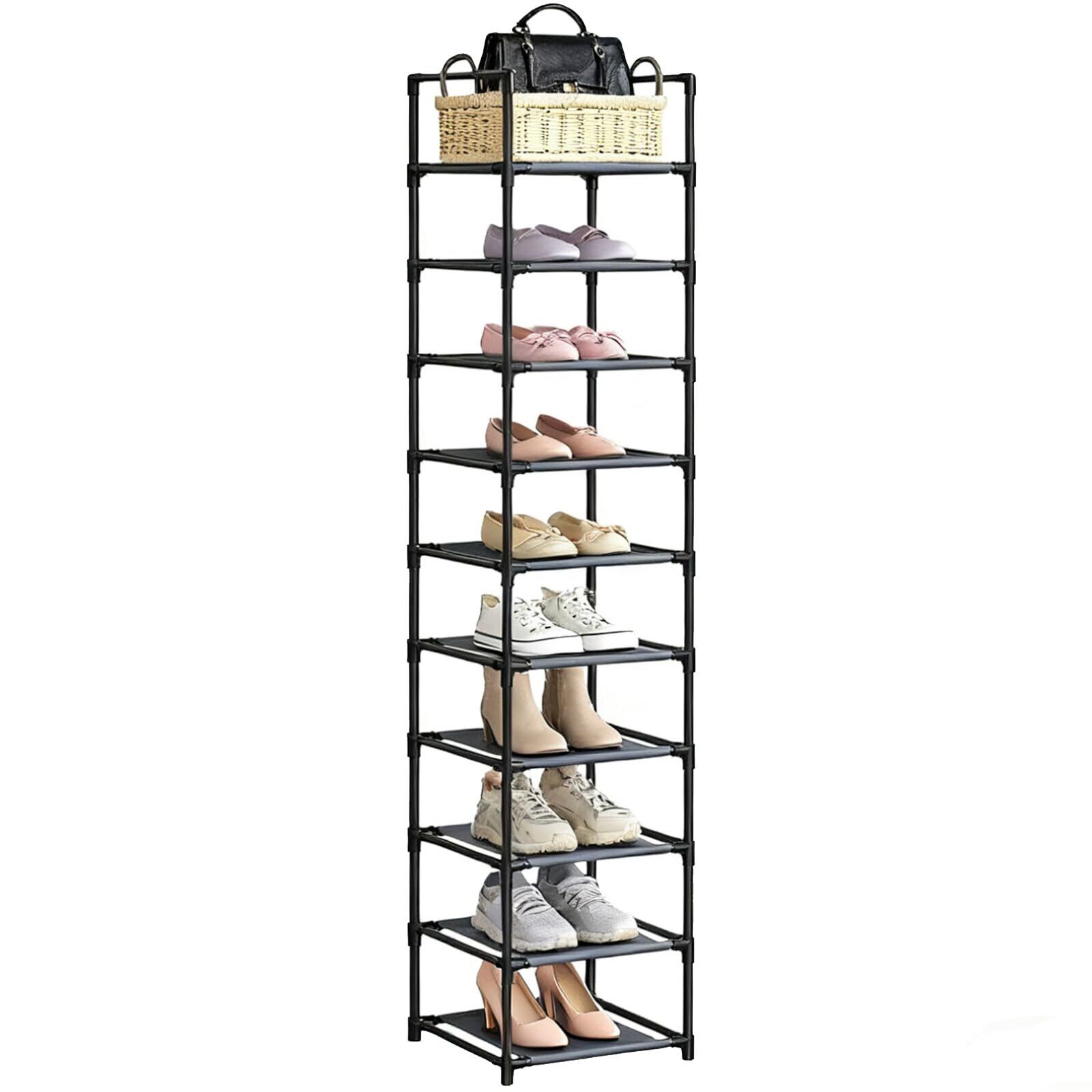 【人気商品】シューズラック 10段 靴収納 最新防塵版 シューズラックスリム 省スペース 進化した不織布 靴棚 寝室/玄関に靴を効率収納 靴入れ 組み立て式 幅約30×奥行30×高さ175cm(10段、ブラック)
