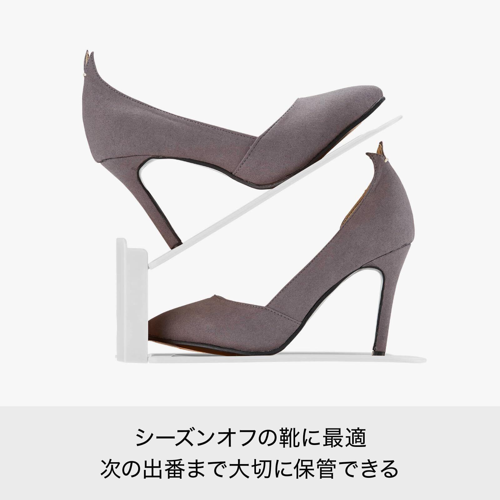 ハイヒールからローファーまで靴の高さに合わせて調節できる靴ホルダー。