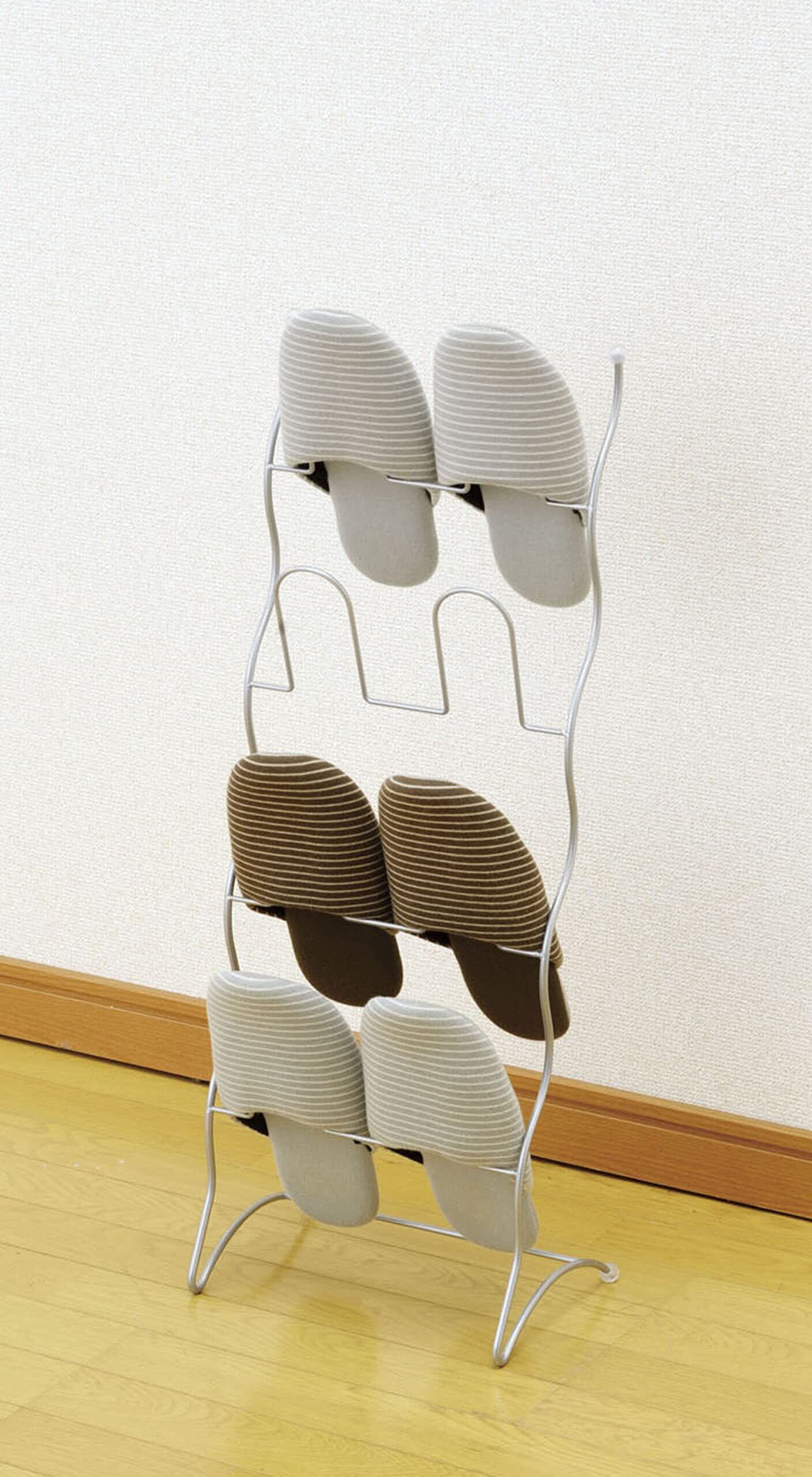 シンプルでスタイリッシュなワイヤー製のスリッパラックです。