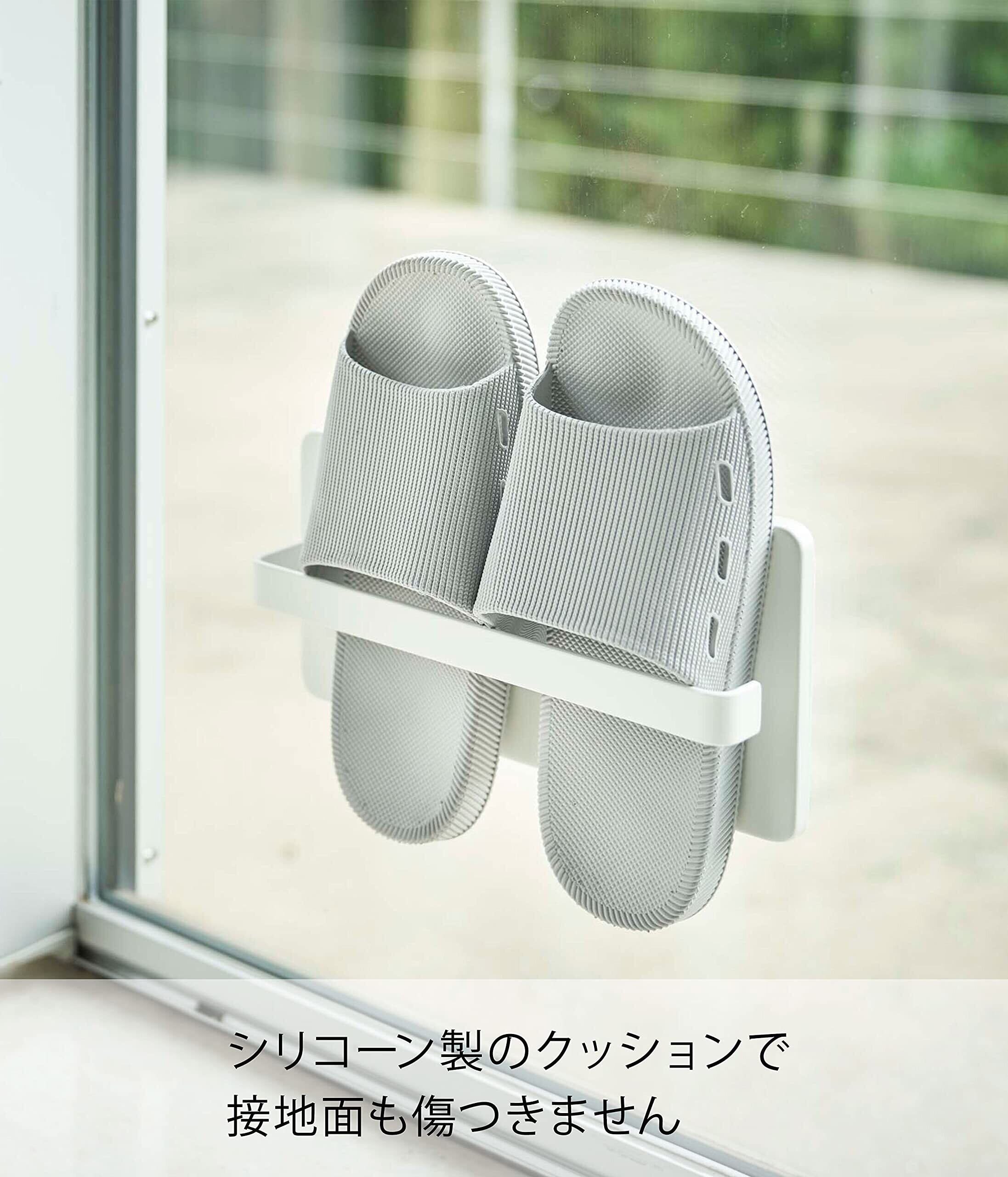 【新着商品】山崎実業(Yamazaki) ツーウェイベランダスリッパラック ホワイト 約W25XD5XH12.5cm プレート 吸盤取り付け 木ネジ付きで壁面収納も可 4965