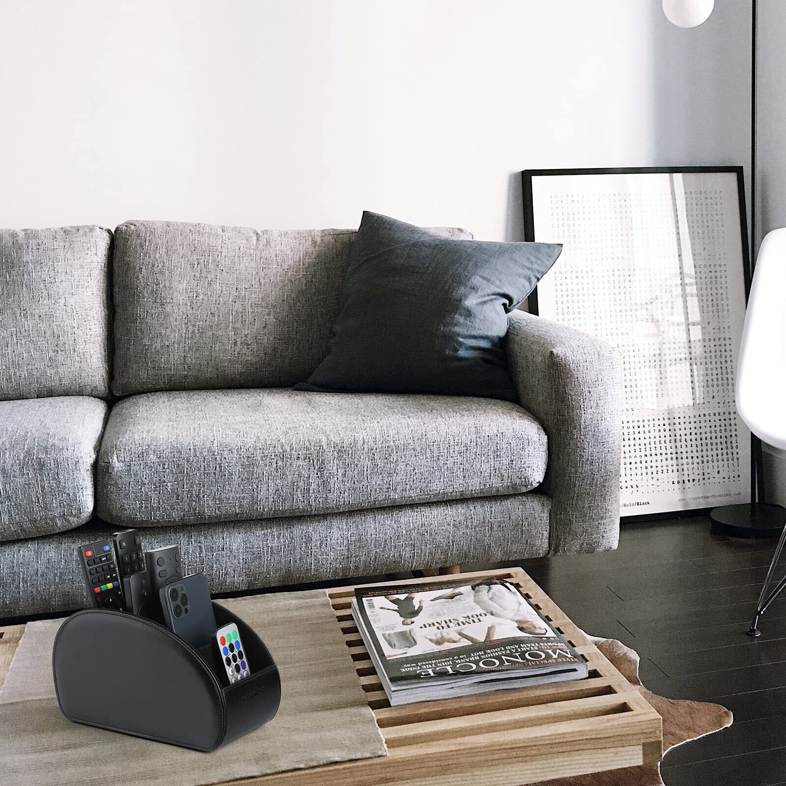 Vlandoリモコンラック PUレザー 大きいサイズ リモコン収納 テーブル 5格仕切り リモコンスタンド おしゃれ 防水 多機能収納ボックス 大容量 文房具 卓上小物 ブラック
