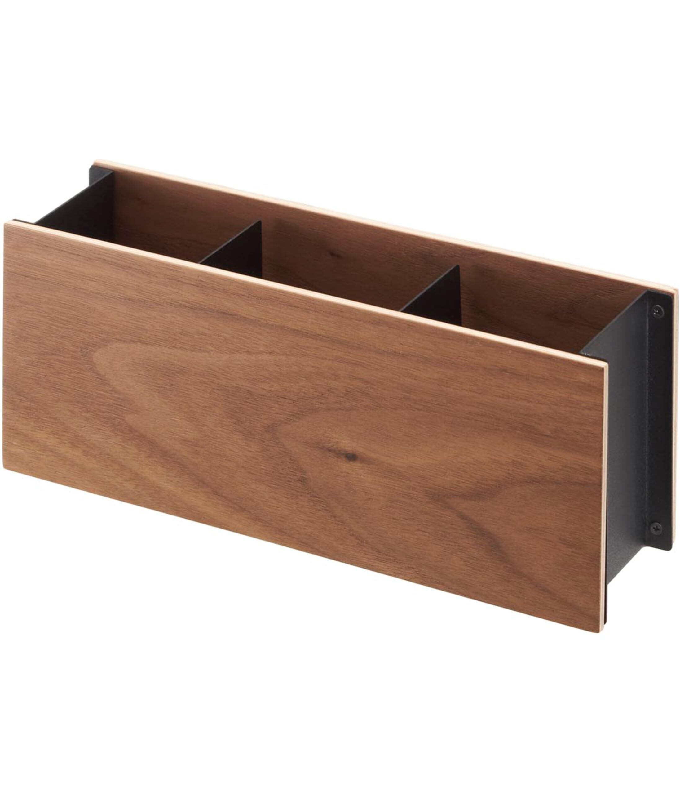 美しい木目でインテリア性のあるスタイリッシュで使い易いリモコンラック。仕切りの隙間にDMなども収納可能。