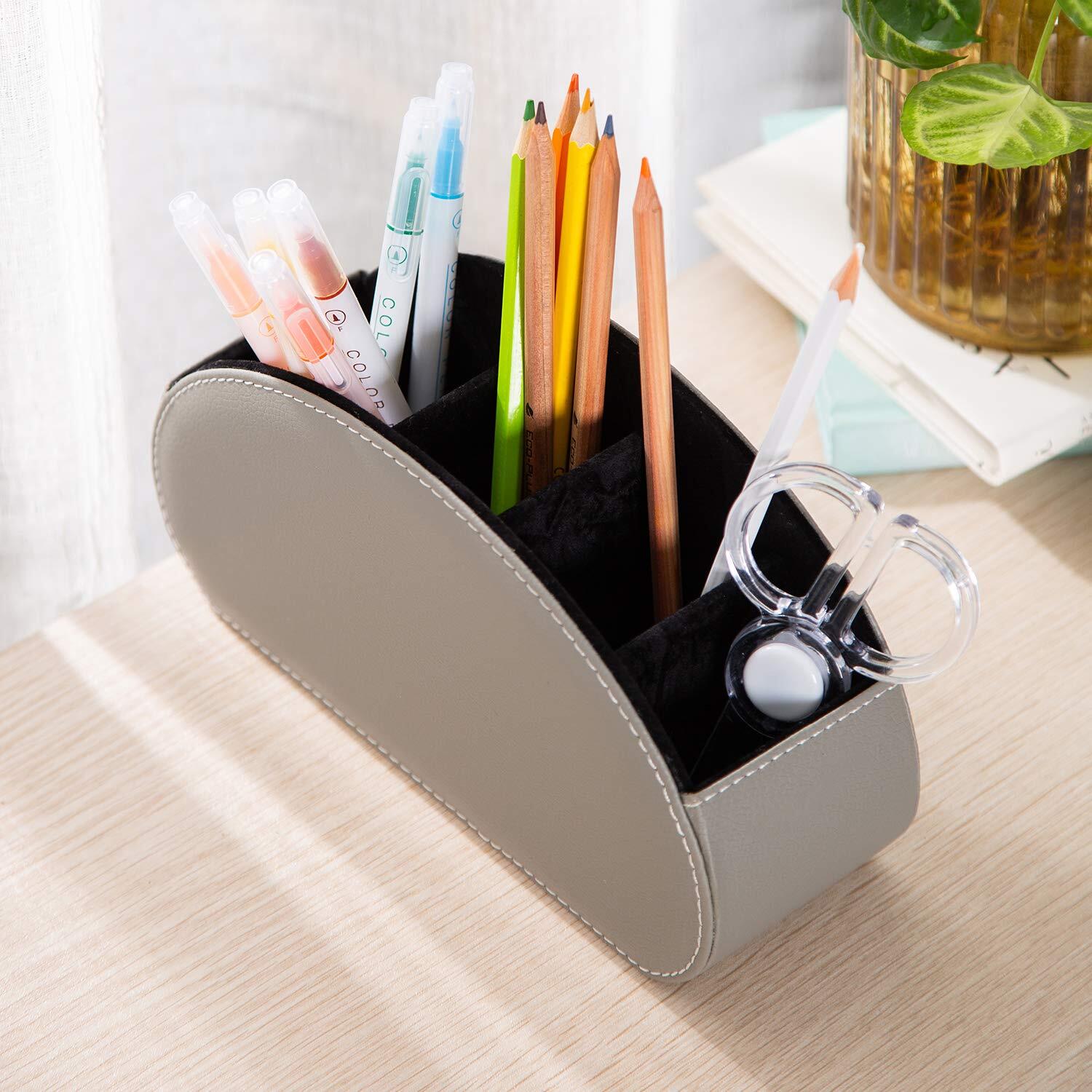 リモコンラック PUレザー リモコン収納 テーブル 5格仕切り リモコンスタンド おしゃれ 防水 多機能収納ボックス 文房具 卓上小物