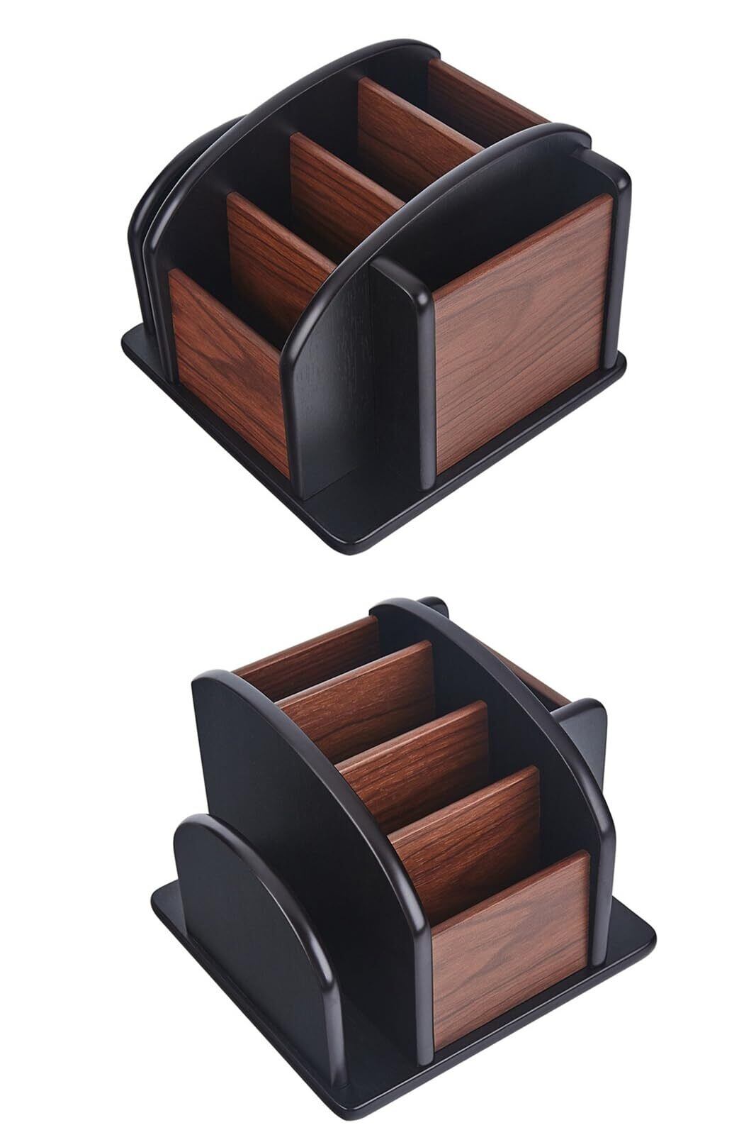 【新着商品】トレードワン(TRADE ONE) リモコンラック デスクオーガナイザー 収納ケース マルチラック 回転式 木製 小物入れ 幅18×奥行18×高さ15cm デスク収納 20185