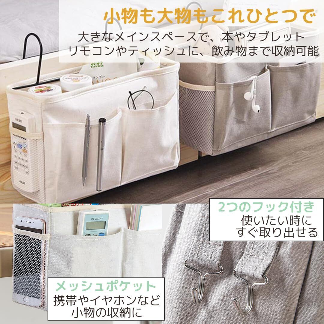 【ベッド周りの散らかりを一瞬で解消】ベッドサイドのスマホやリモコン、ティッシュなどをすっきり収納できる、フック付きの吊り下げ式収納ラック。自宅、オフィス、病院などどこでも活躍。シンプルなデザインで、どんなインテリアにもマッチし、小物をすぐに手に取れる便利さを提供します。