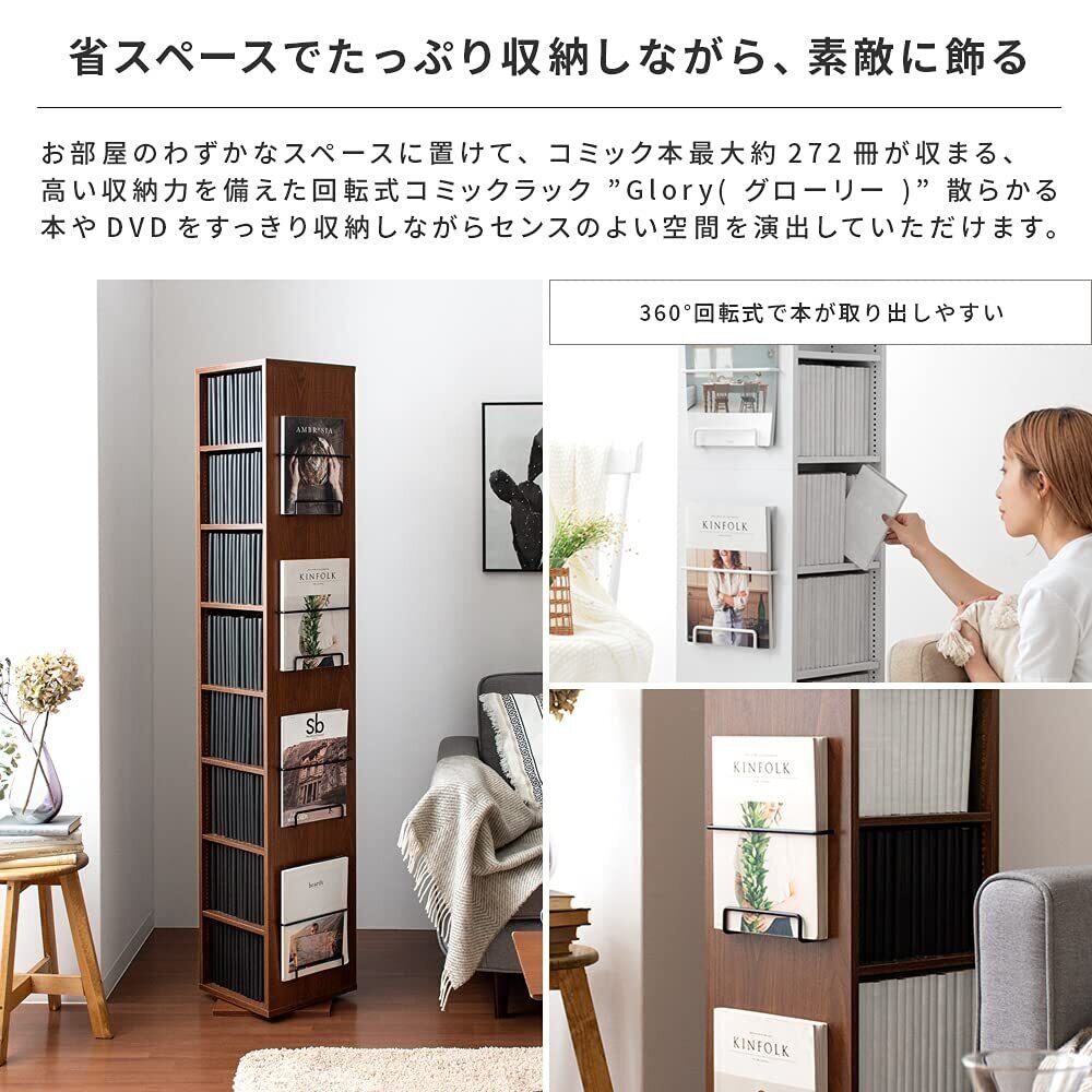 エア・リゾーム 本棚 マガジンラック 回転 おしゃれ リビング 収納 回転式コミックラック Glory(グローリー) (ホワイト, 8段)
