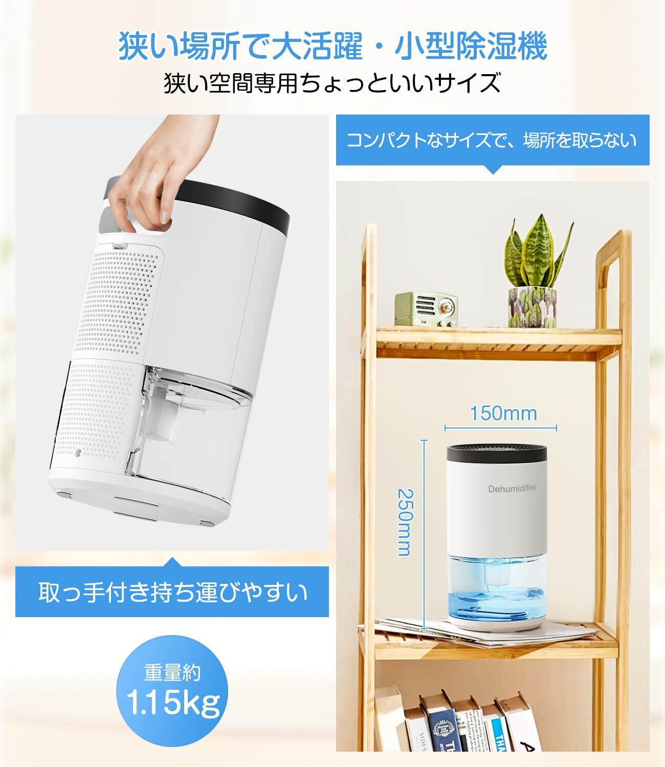 【狭い空間向け・小型軽量】製品サイズは15×15×25cm、重量は1.15kg。A4用紙ほどの大きさで小型軽量。背面には持ち手があり、簡単に持ち運び可能です。床やテーブルはもちろん、玄関、寝室、押し入れ、クローゼット、洗面所、オフィス、地下室、トイレ、下駄箱、浴室、脱衣所、キッチン、子供部屋など、さまざまな場所に設置可能。小空間や一人暮らしに最適です。
