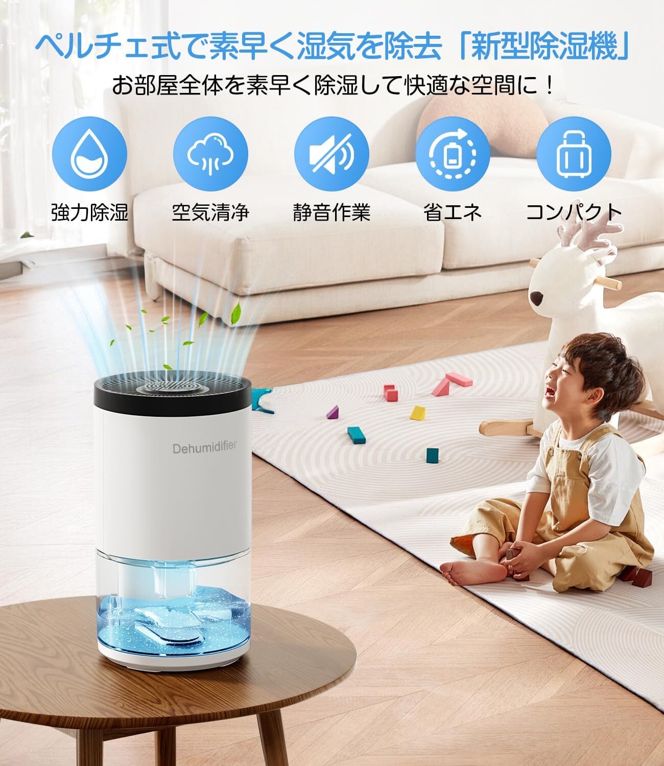 除湿機 除湿器 小型 じょしつき ペルチェ式 強力除湿 1000ml コンパクト 満水時自動停止 7色ライト付き 静音 省エネ 6-10畳 湿気取り 梅雨対策 結露防止 カビ防止 衣類乾燥 部屋干し 一人暮らし 下駄箱 クローゼット 洗面台 脱衣所 トイレなどに適用 PSE認証済 (ホワイト)