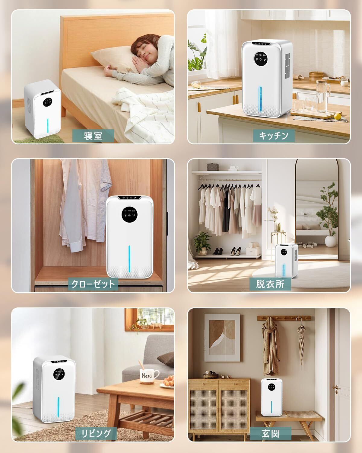 【狭所向け・小型除湿機】32 x18.5x13.5cmのコンパクトサイズなので、床やテ-フルに置くだけでなく、玄関、クローゼット、押入れ、下駄箱、脱衣所、キッチン、浴室、子供部屋、ガレージなど小さな空間にもぴったり、一人暮らしの部屋にも適しています。収納も簡単で、スペ-スを取りません。適用面積:約3~15畳(環境、空間、気流などの要因によって、除湿能力は弱くなる場合があります。)重量が約2kgで、どこでも簡単に移動でき、複数の場所で使用できます。