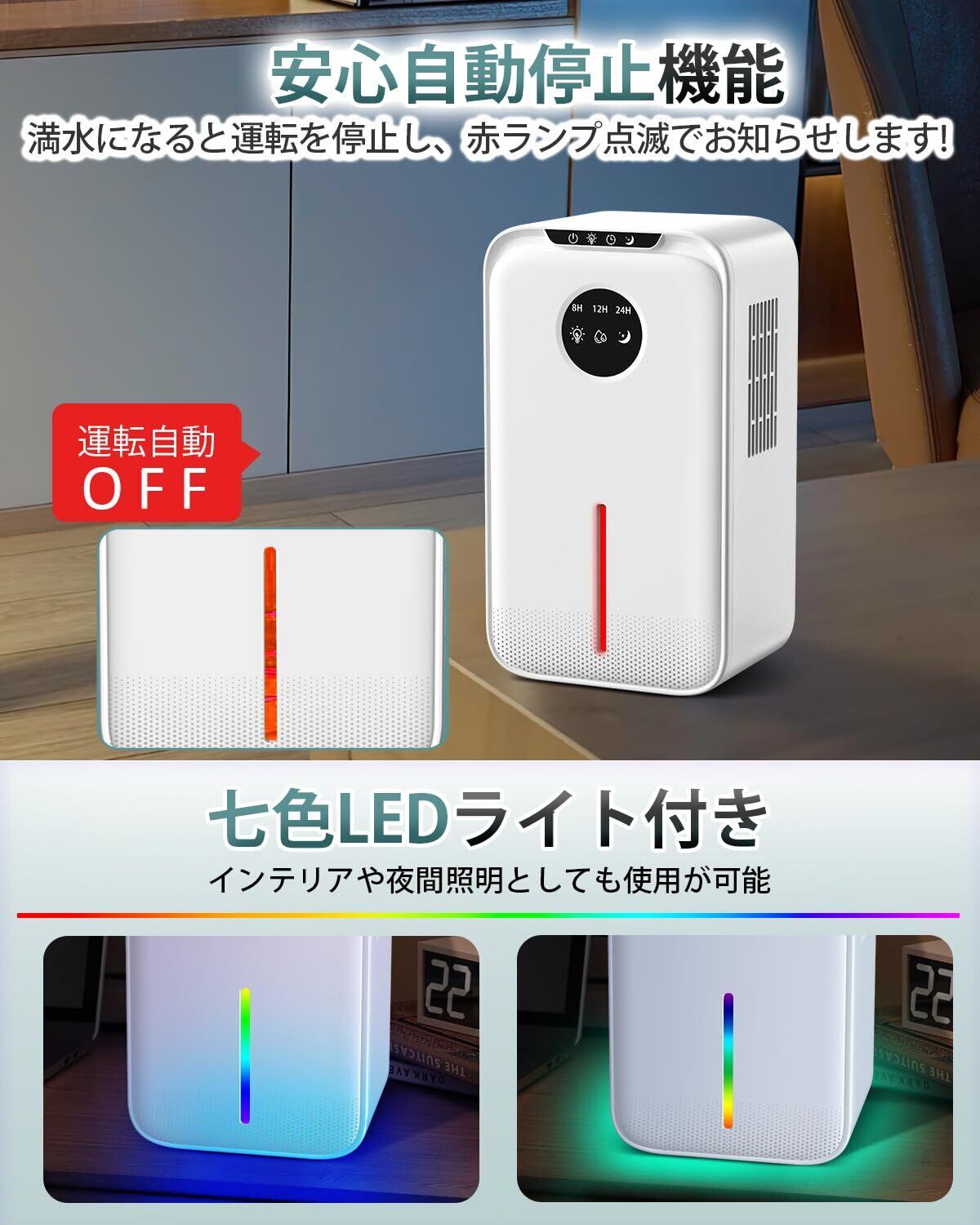 【新春セール】Imspace 除湿機 小型 除湿器 0.8L/日 湿気取り じょしつぎ コンパクト 静音 省工ネ 大容量 2.2L 連続排水 自動停止 タイマー機能 自動除霜機能 スリープ機能 7色LEDライト 湿気 梅雨 カビ 対策 狭所向け クローゼット/下駄箱/洗面台/脱衣所/トイレなどに適用