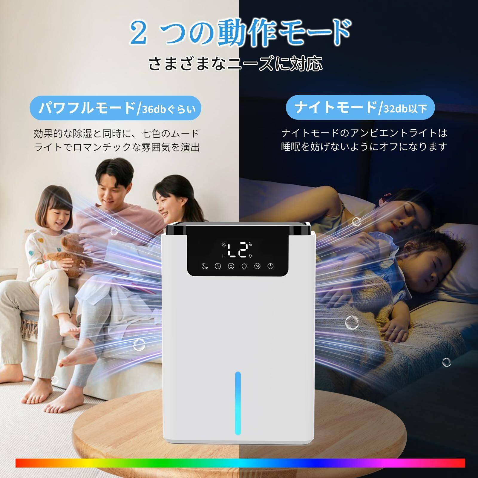 除湿機 小型 除湿器2200ml大容量 18畳まで対応 ダブルペルチェ式 除湿乾燥機 クローゼット 除湿 空気清浄機 静音 満水自動停止 タイマー搭載 7色ライト 携帯便利 脱臭 省エネ/コロナ/カビ/梅雨/結露/花粉対策 湿気取り 家庭用 PSE認証済