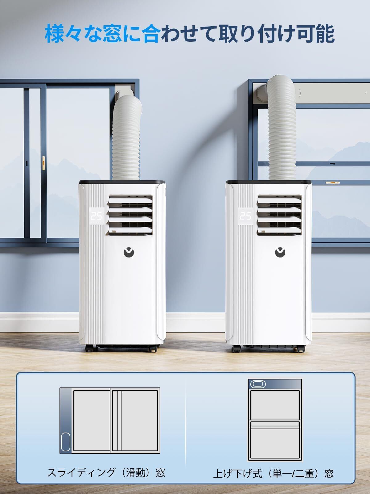 【コンパクトなデザイン&ラクラク移動】重量は23kgで、サイズは約13.97 x 13.4 x 27.48 です!4つのキャスターとサイドハンドルを使用して、自宅やオフィスの部屋間でポータブルエアコンを簡単に移動できます。調節可能な窓パネルセットを装備して、当社のクーラーはさまざまな窓に対応でき、掘削の必要なく、手間のかからない設置できます。