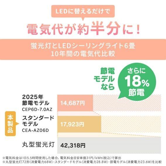 【節約】家の照明をLEDに変えるだけで効率的な節電に。蛍光灯とLEDシーリングライト10年間の電気代は、24,395円もお得になる。