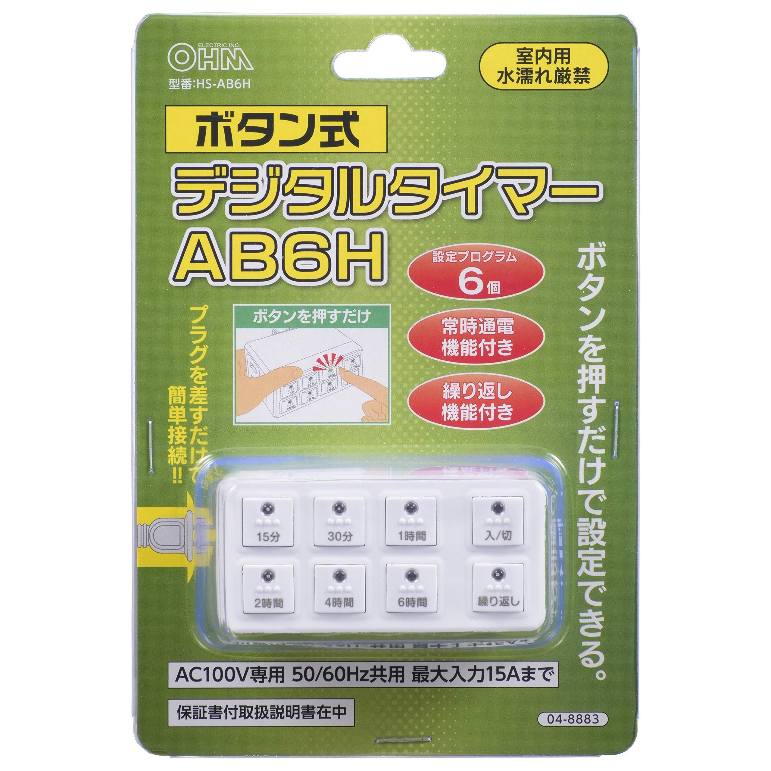 オーム電機 ボタン式デジタルタイマー タイマーコンセント AB6H HS-AB6H 04-8883