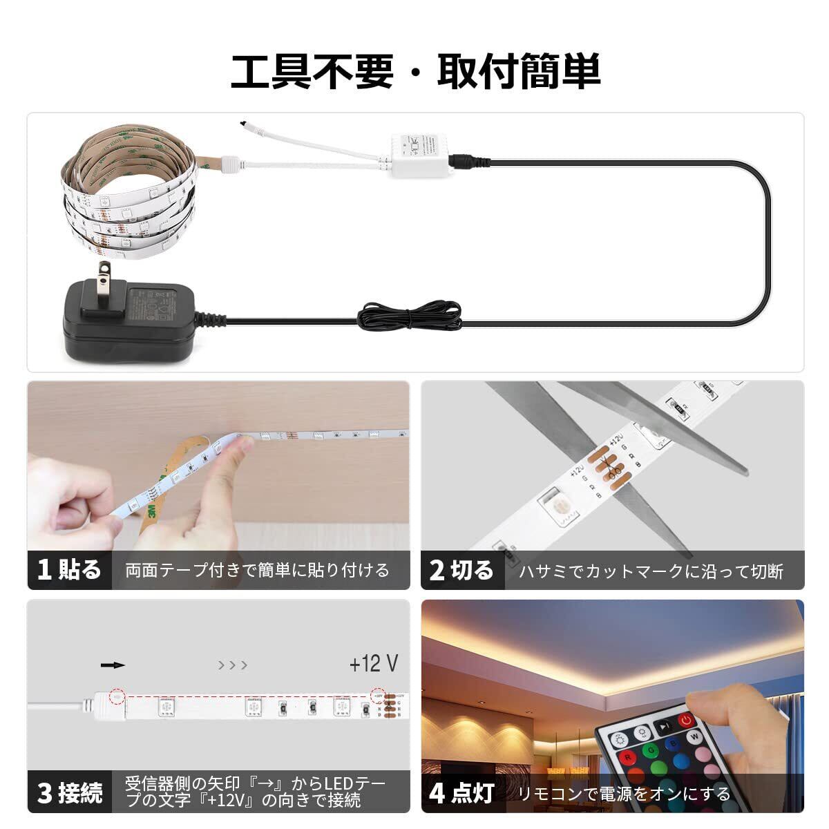 Lepro LEDテープライト 5m RGB テープ ライト 明るい 高輝度 150連 高密度 SMD5050 リモコン付き ledテープ 12v 切断可能 3M両面テープ付き 室内 間接照明 店舗 キャビネット 装飾用