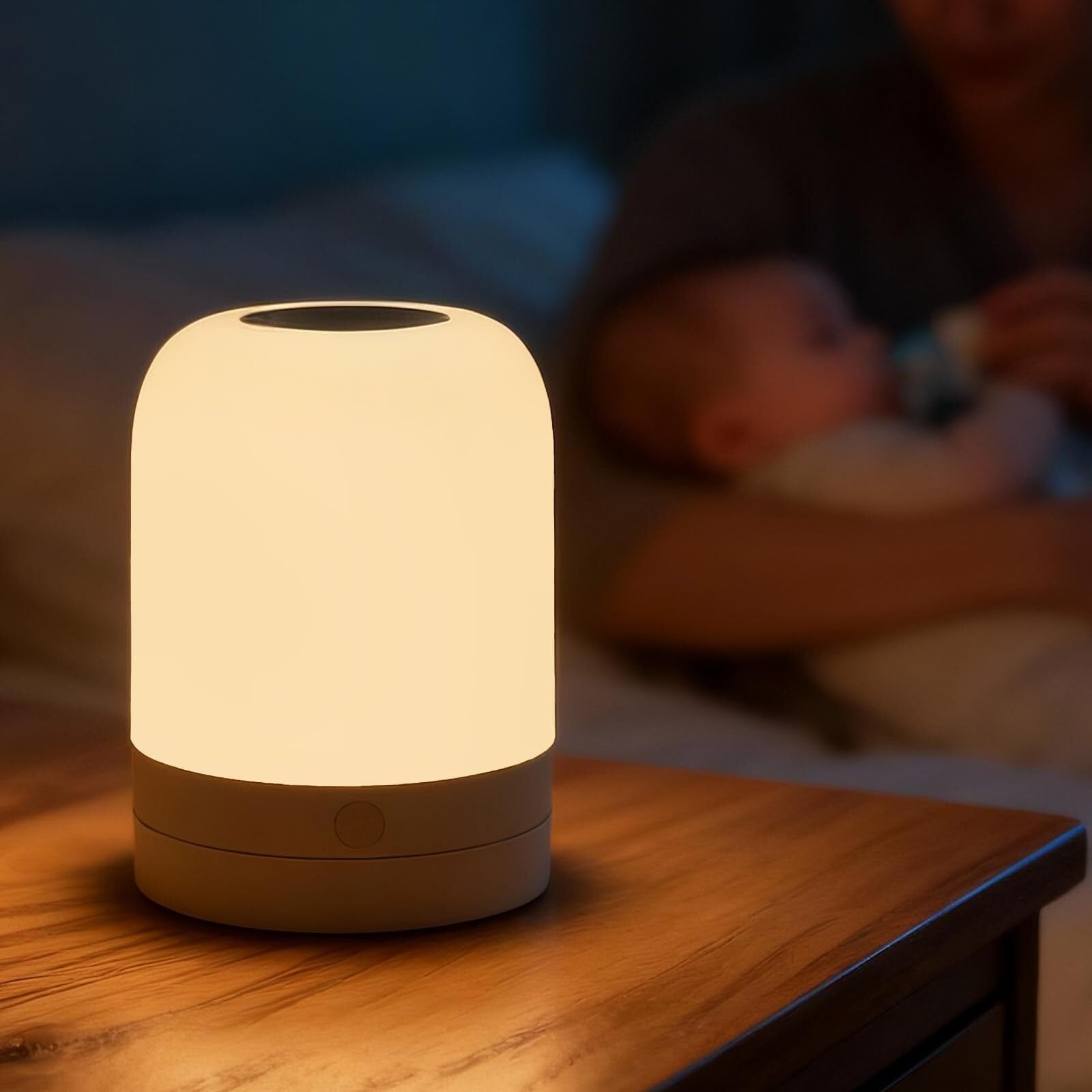 【タッチセンサー式ナイトライト】このベッドサイドランプはタッチセンサー式なので、上部のタッチボタンで点灯・色温度や明るさを調節できます。暗闇の中で小さなスイッチを探すことなく、手探りでも簡単にスイッチを入れることができます。使いやすいランプで授乳用ライト・おむつ替え・夜中のトイレの照明として活躍できます。