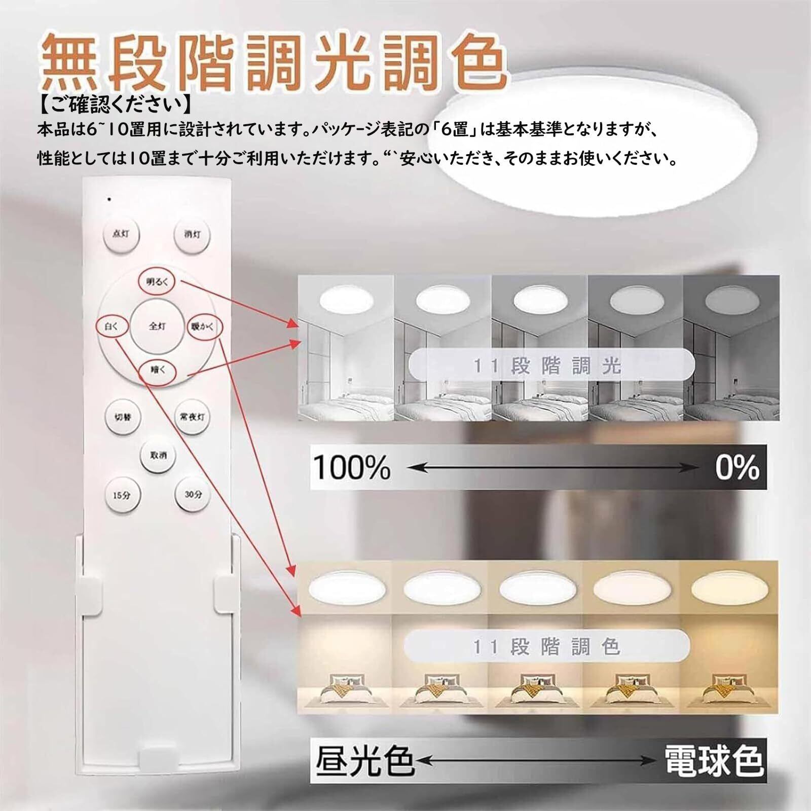 【リモコン/調光調光】便利なリモコンで、明るい色は「昼光色」から「電球色」まで調整でき、明るさは10%〜100%の間で調整できます。 さまざまな照明雰囲気を作り出すことができます。包装は最小6畳で表示する*この天井灯(シーリングライト)は45Wで、適用範囲は6~10畳、包装には最小適用範囲として「6畳」と表示されています。