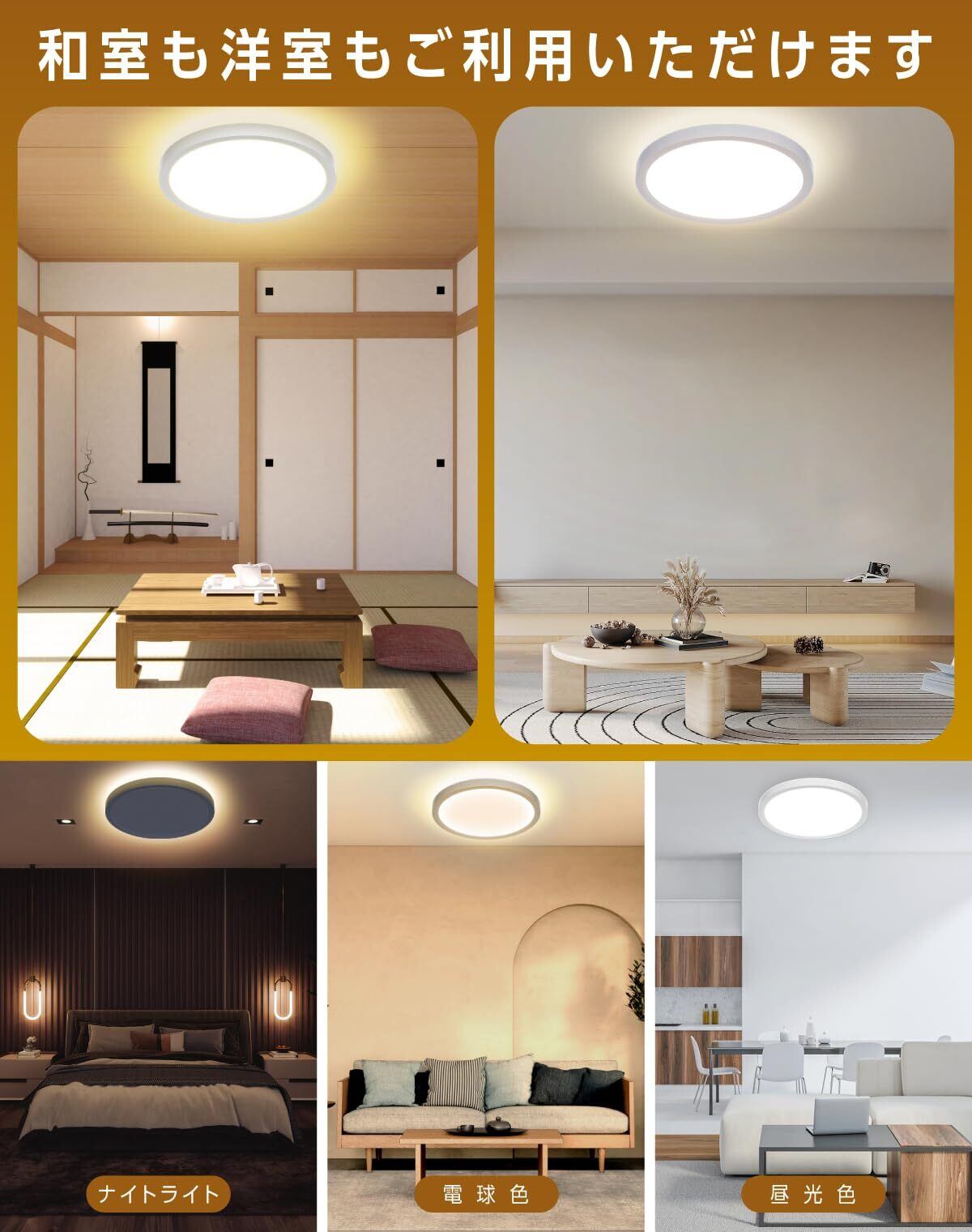 ✨【多機能ナイトライト搭載LEDシーリングライト】このシーリングライトは、メインライト、ナイトライト、ダブルライトの3つの照明モードを備え、日常から特別なシーンまで様々なニーズに応えます。特に、日食を模した間接光のナイトライトモードは、部屋全体に温かみのあるオレンジ色の光を放ち、リラックスした雰囲気を作り出します。パーティーや映画鑑賞、静かな読書時間に最適な、ユニークな装飾効果と実用性を兼ね備えた照明器具です。