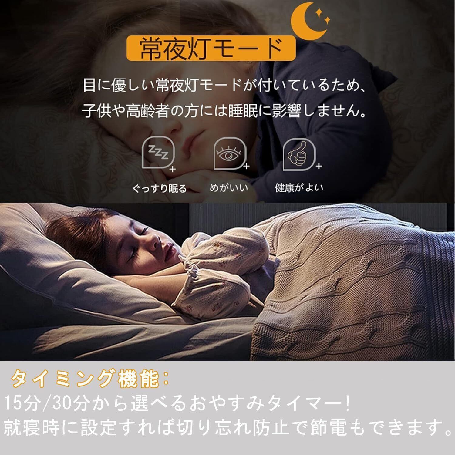 【常夜灯&タイマー 夜中の安全と快眠を守る】低輝度の電球色ナイトライトで、家族の安全な夜間移動と眠りをサポートします。おやすみタイマー(15分/30分)に設定することで、消し忘れの心配なく眠ることができます。照明が自動で消灯するので、電気代の無駄を防ぐことができます。非常に実用的な機能です。