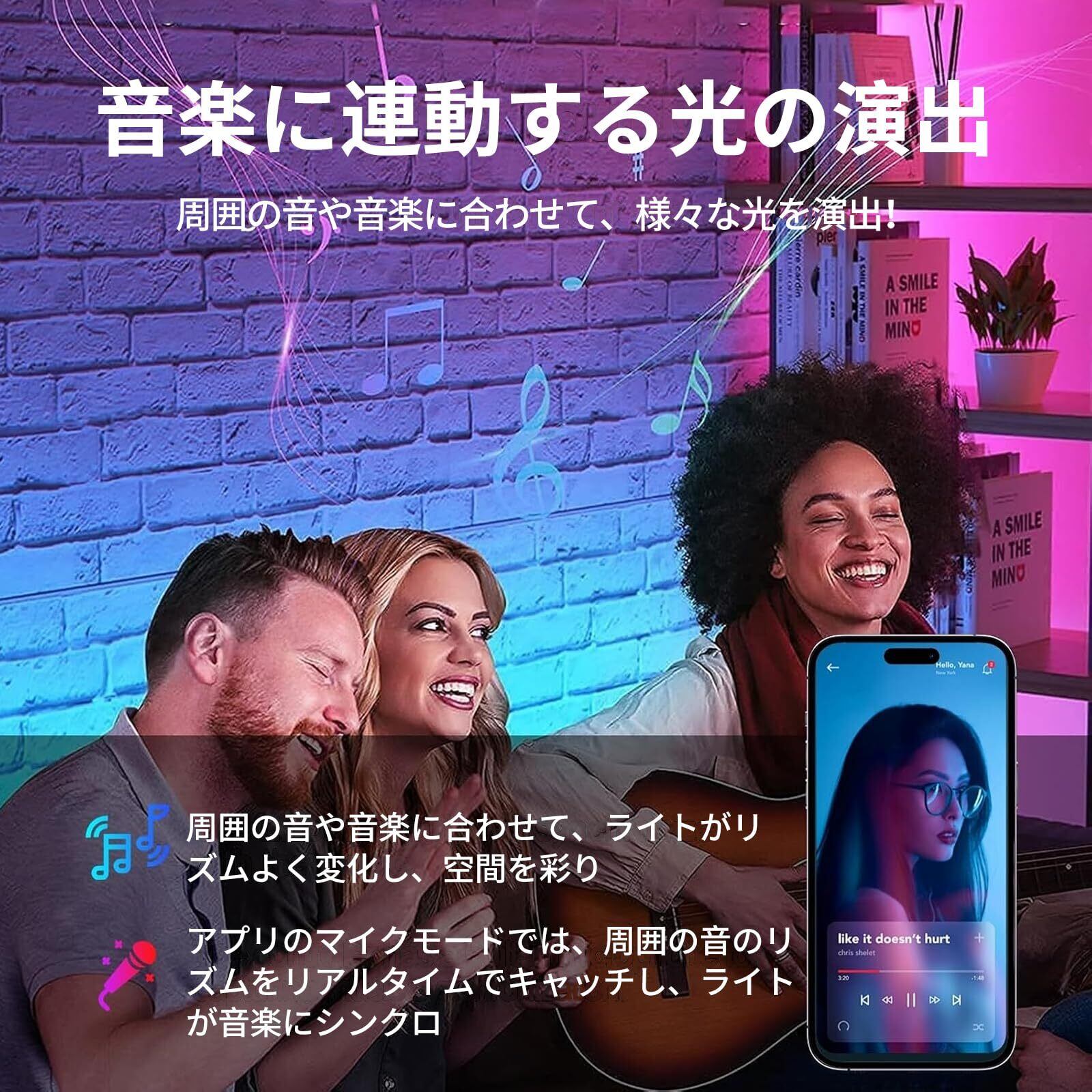 【アプリで光の魔法を自由自在に操ろう!】RGB 1600万色、音楽連動4モード、22種の演出モードで、どんなシーンでも完璧な照明を!タイマー機能やBluetooth対応で、スマホひとつで外出先からでも簡単に操作可能。最大16色×4モードのカスタマイズで、自分だけの理想の空間を演出!音楽と連動して光がリズムに合わせて踊り、部屋をダイナミックに変身させます。簡単操作で、おしゃれで洗練された空間が手に入る、今すぐ手に入れたくなる照明!