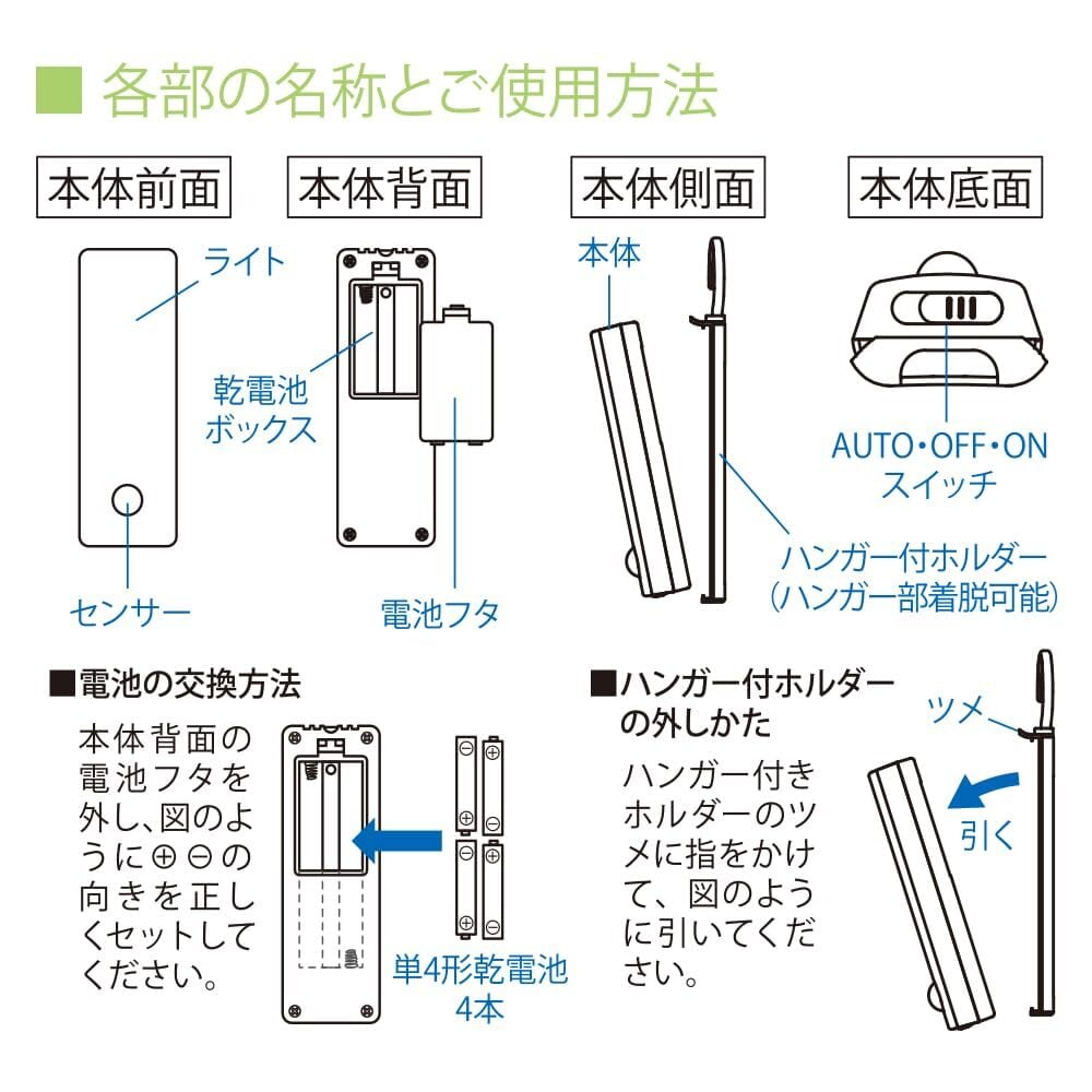 オーム電機 LEDセンサーライト 乾電池式 フック型 LS-B60JF-4 06-0145 OHM
