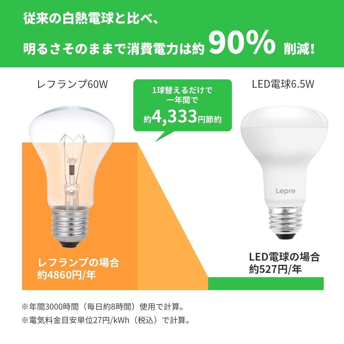 Lepro LED電球 E26口金 レフランプ形 非調光型 60W形相当 6.5W 電球色 650lm レフタイプ 広配光タイプ 高演色性 PSE認証済み 密閉器具対応 省エネ キッチン 台所 トイレ リビング ダイニング 脱衣所 寝室 廊下 玄関照明用 レフ電球 2個入り