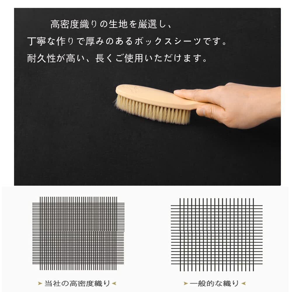 【極柔な肌触りピーチスキン加工】高密度織りの生地を厳選し、丁寧な作りで厚みのあるボックスシーツです。耐久性が高い、長くご使用いただけます。ピーチスキン加工で、すごく柔らかく、シワや毛玉もなりにくく、サラサラとした肌触りですごく心地よいです。毎日快適に眠れて、一年中お使いいただけます。