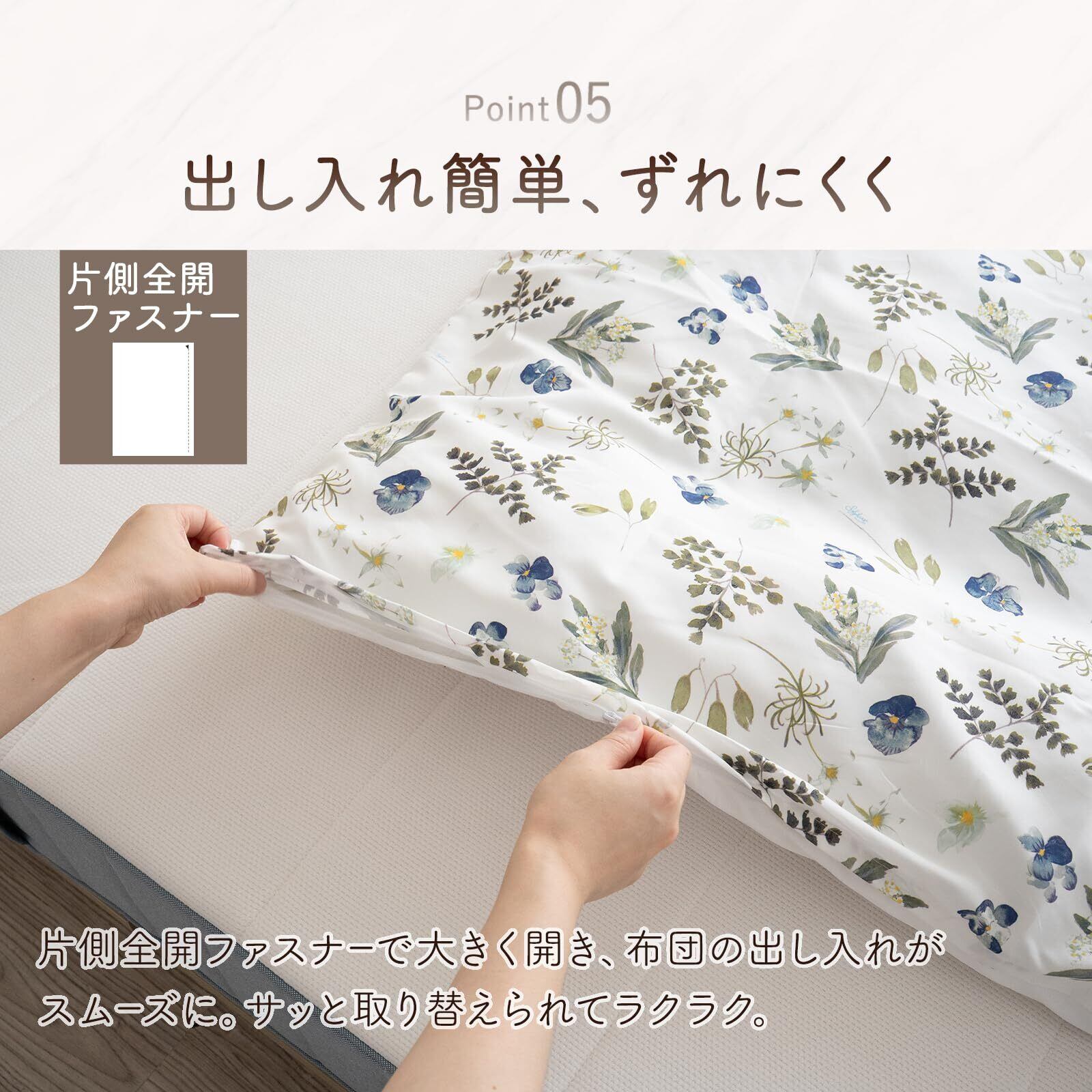 【全開ファスナーで着脱簡単】全開ファスナー仕様で布団の出し入れがスムーズ。忙しい朝やお洗濯後のセットも手早く行えます。