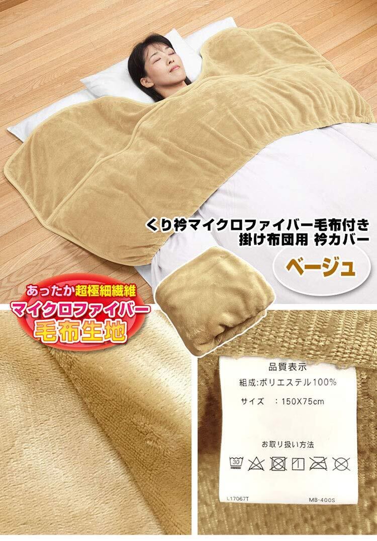 【数量限定】メーカー直販 掛け布団用 衿カバー シングル 150×75cm くり衿あったかマイクロファイバー毛布付き MB-400S-M1 (ベージュ)