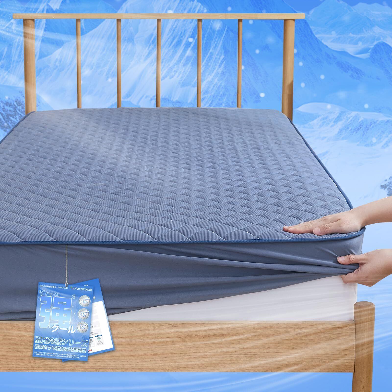 colorsroom パッド一体型ボックスシーツ 敷きパッド シングル 夏用 接触冷感 ひんやり リバーシブル 両面使える TEIJINマイティトップⅡ追加 抗菌・防臭・防ダニ 冷感 シーツ ボックスシーツ 洗える 速乾 オールシーズ 100×200×25cm ネイビー